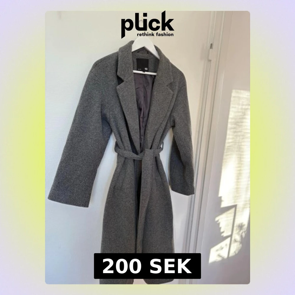 Snygg grå kappa från 157 i storlek S. Klassisk modell med bred krage, knytbälte i midjan. Lite nopprig, och ett hål på insidan men inget som syns speciellt mycket. Se bilder för allmänt skick.