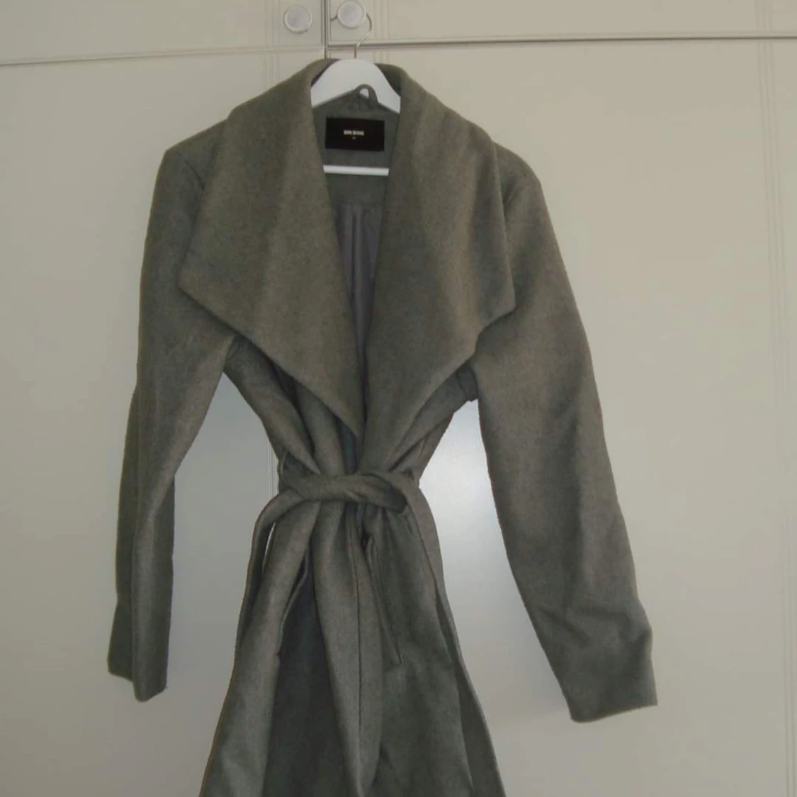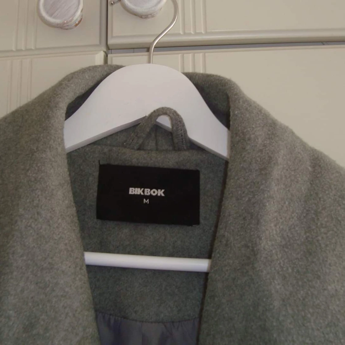 Grå kappa från bikbok i strl M. Går till vaden på mig (är 165 cm). Normal i storlek🩶