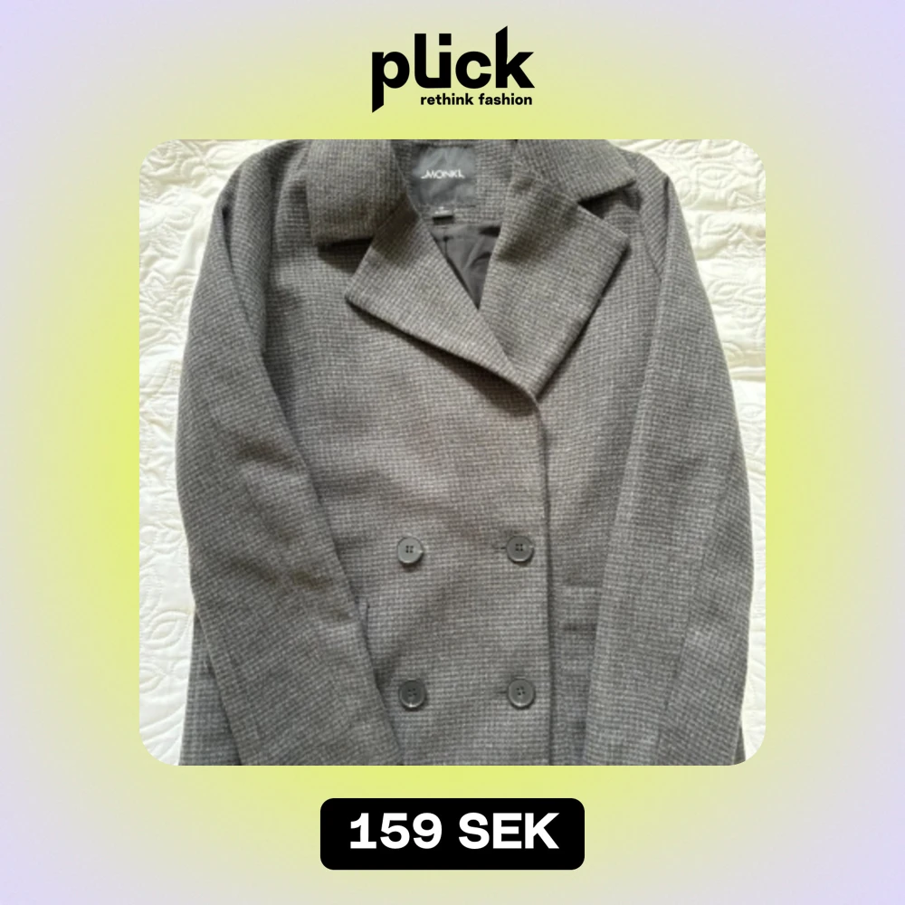 Säljer en snygg grå kappa från Monki i storlek XS. Den har ett klassiskt rutigt mönster och är dubbelknäppt med stora knappar. Perfekt för höst och vinter med sin stilrena design och bekväma passform. Kappan är långärmad och i mycket bra skick!