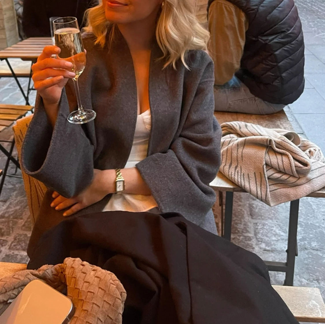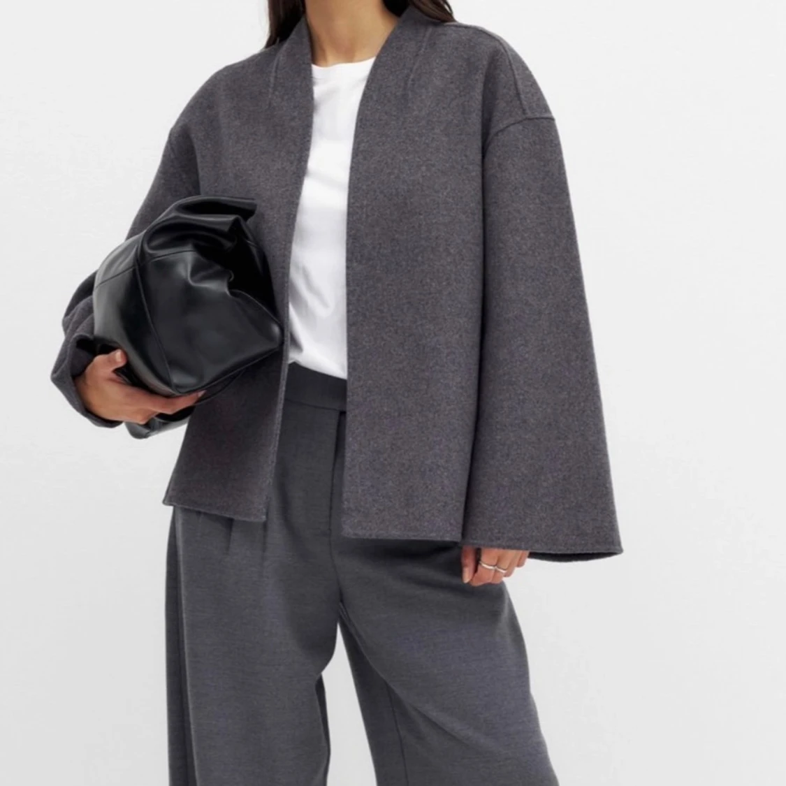 Säljer en stilren grå kappa från nakd som är slutsåld, är tillverkad i mjuk ullmix. Storlek xs