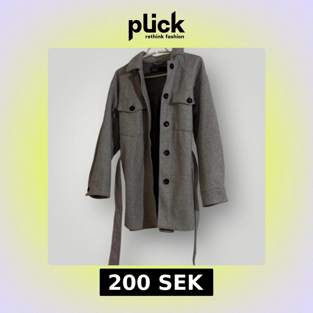 Snygg grå kappa från Zara med bälte i midjan och stora svarta knappar. Jackan har två bröstfickor med lock och klassisk krage. Perfekt lager-på-lager-plagg för en chill och trendig look.