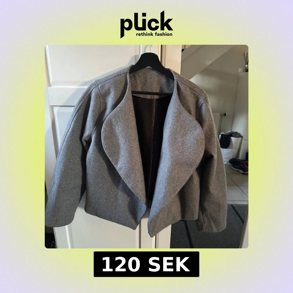 Snygg grå kappa med omlottfront och mjukt, lite tjockare material. Kappan har lång ärm, rak passform och stilren design utan synliga knappar eller dragkedja. Strl S