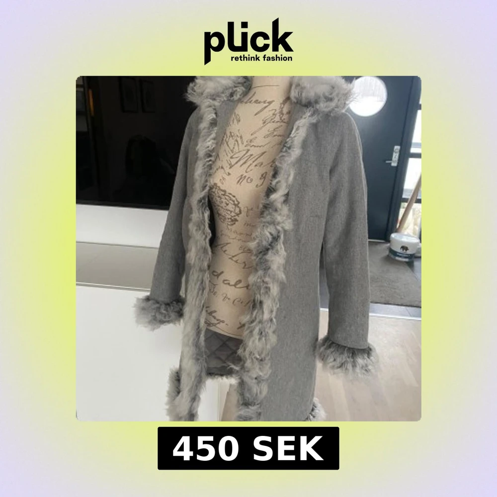 Säljer en elegant grå kappa från Girls Casual Wear med mjuka fuskpälsdetaljer längs kragen, ärmsluten och framkanten. Riktig vintage piece