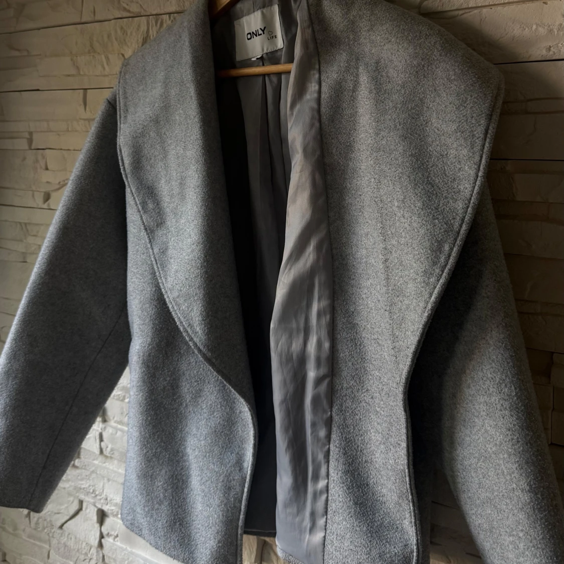 Stilren grå kappa från ONLY. Jackan har en rak passform och är perfekt för dig som gillar minimalistisk och clean stil. Materialet känns mjukt och har en ull-liknande känsla. Snygg att slänga över vilken outfit som helst. Jättebra inför hösten!