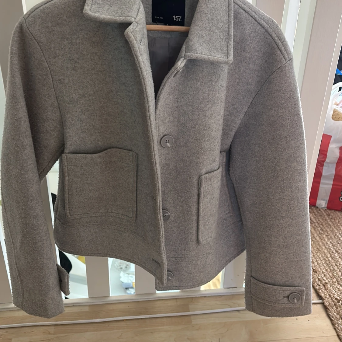 Stilren kappa från 157 med klassisk krage, stora fickor framtill och knäppning med knappar. Jackan har lång ärm med knappdetalj vid ärmslut. Perfekt för lager-på-lager under höst och vår.