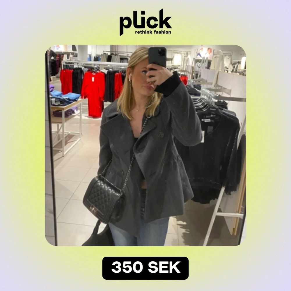 Jättesnygg grå kappa, passar storlek 34-38 skulle jag säga. Perfekt nu som vårjacka, men även till hösten.