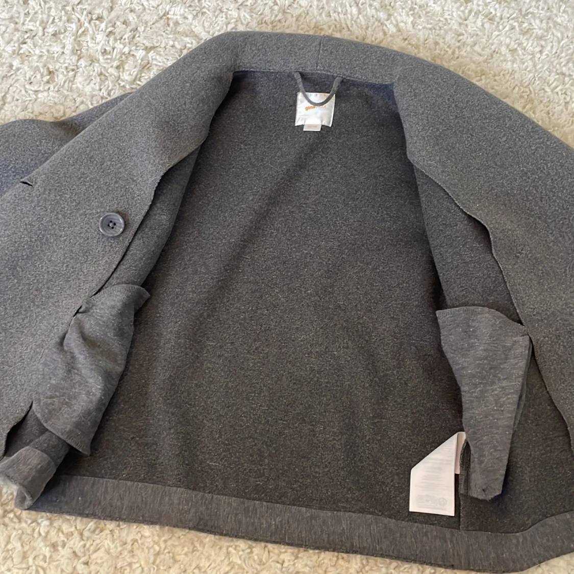 Stilren grå kavajjacka från Gina Tricot med klassisk krage och tre knappar framtill. Jackan har rak passform och är helfärgad utan mönster. Perfekt för dig som gillar en clean och enkel look.