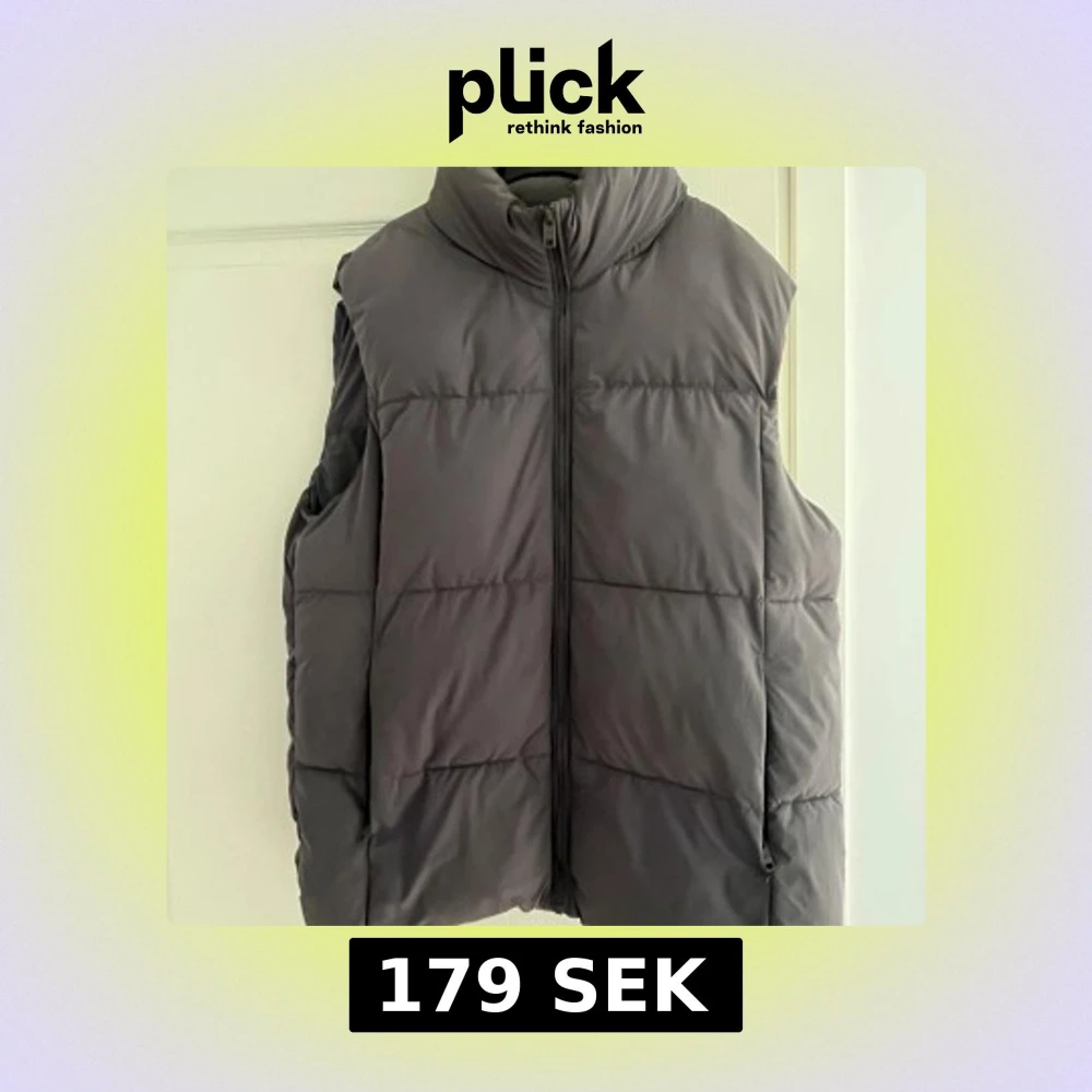 Snygg grå dunväst med hög krage och praktisk dragkedja framtill. Västen har en quiltad design och är perfekt för lager-på-lager under kyliga dagar. Enkel och stilren look som funkar till många outfits. storlek M