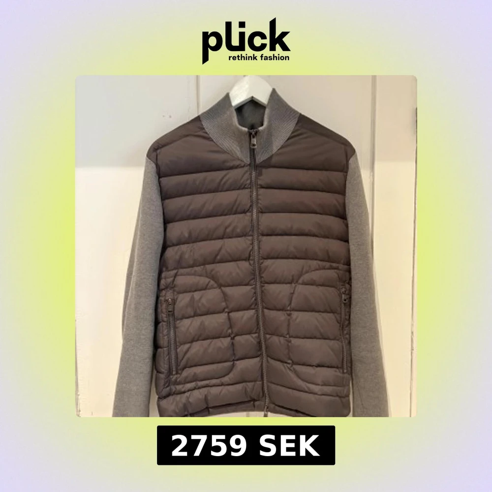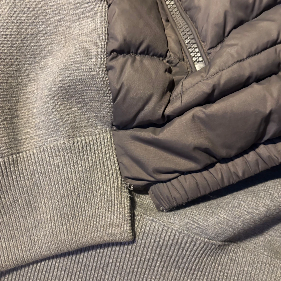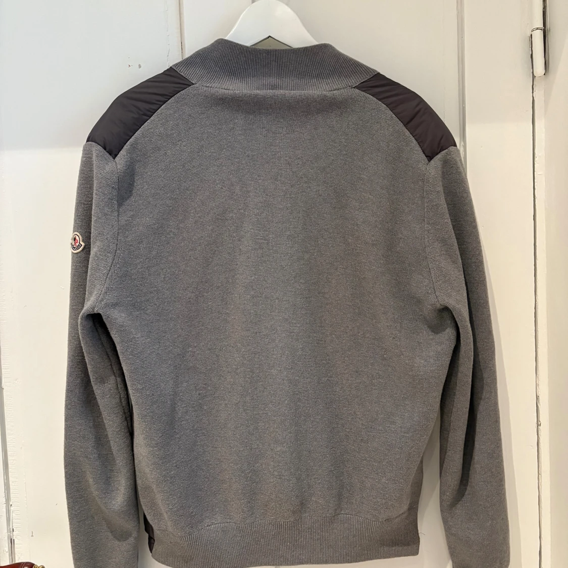 Snygg grå cardiganjacka från Moncler med quiltad front och stickade ärmar samt rygg. Jackan har hög krage, dragkedja framtill och två fickor med dragkedja. Perfekt för höst. Har ej kvitto på jacken men är köpt för 3500kr. Storlek är M men passar S. Jackan är äkta och har NFC märke. Hör av dig om du är intresserad och vill ha fler bilder. På den högra sidan så har jackan sprätt upp lite därför priset.Priser är inte hugget i sten!