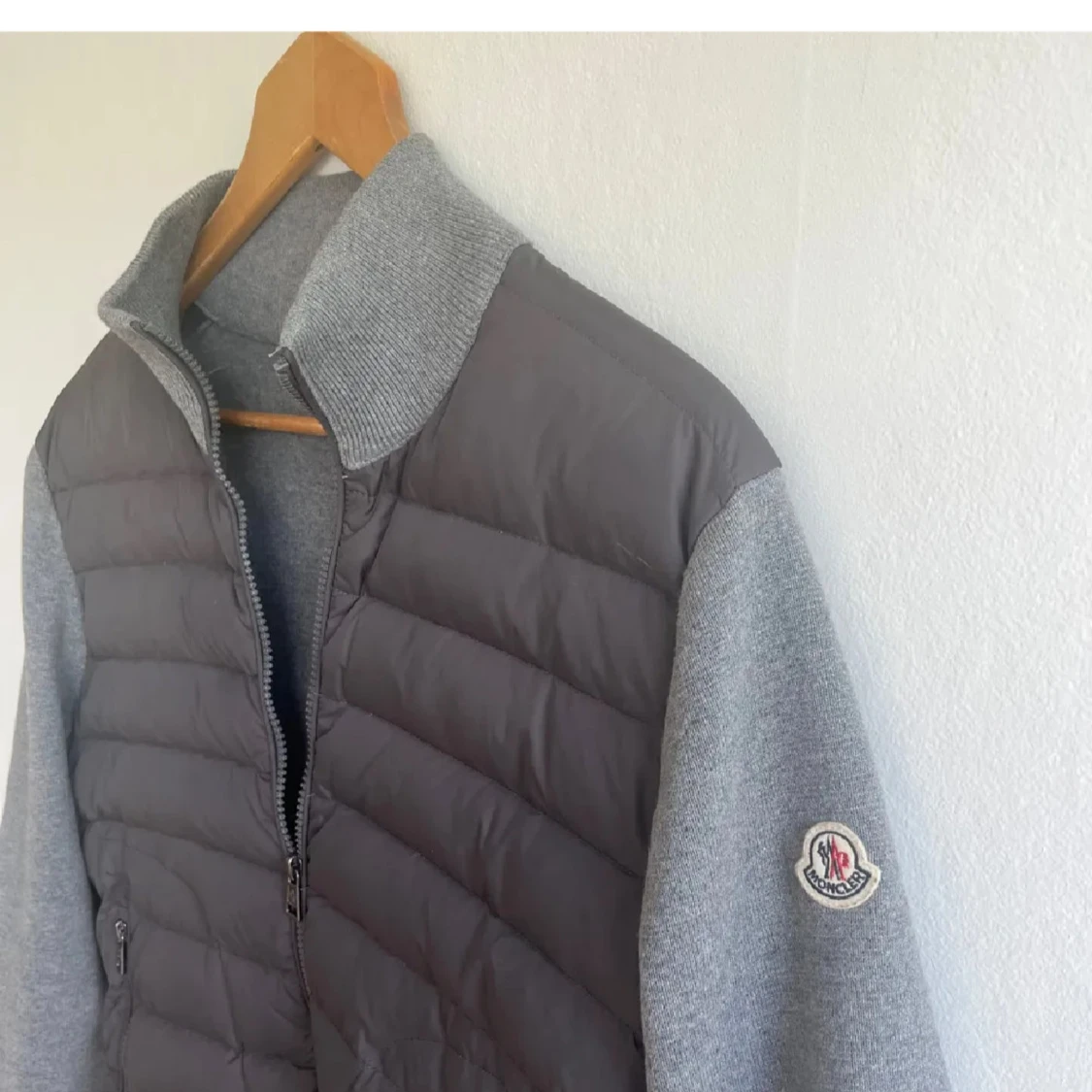 Eftertraktade cardiganen från Moncler med quiltad framsida och stickade ärmar. Jackan har en dragkedja framtill. Mycket bra skick, skriv vid flera bilder. Äktighetsbevis finns!