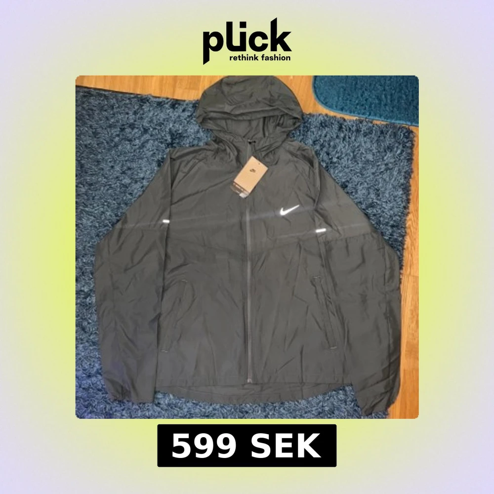 Svart vindjacka från Nike med huva och dragkedja framtill. Jackan har två sidofickor och reflekterande detaljer på ärmarna samt klassisk Nike-logga på bröstet. Lätt och smidig modell i syntetmaterial, perfekt för blåsiga dagar.