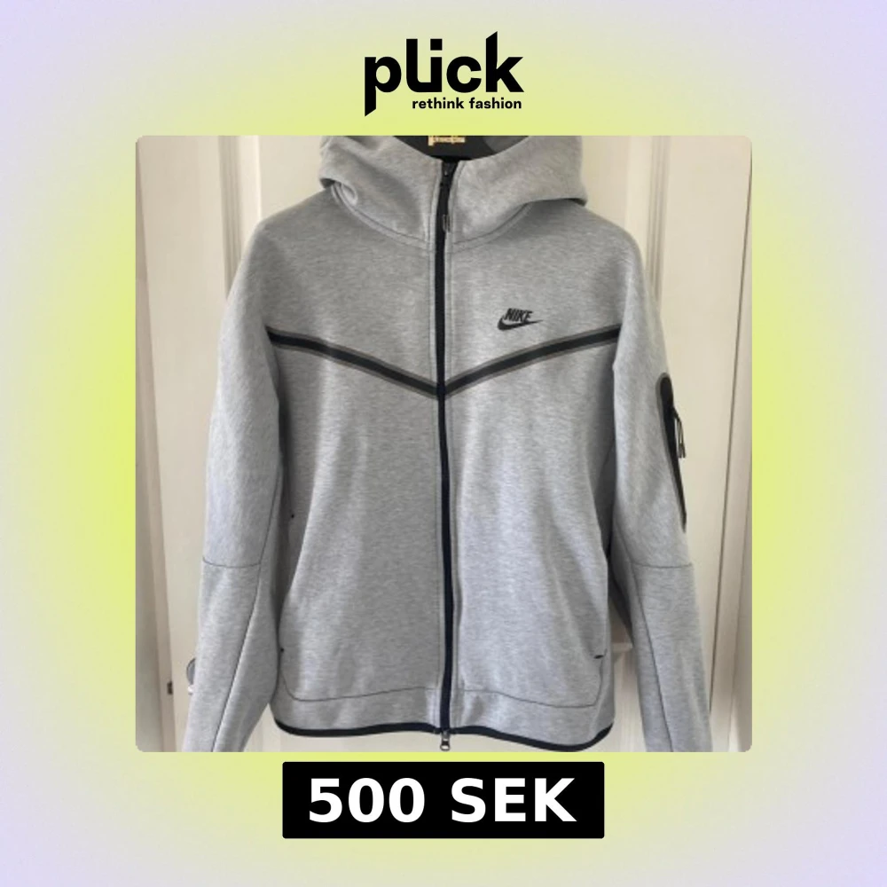 Mycket bra skick ! Snygg grå tecch fleece från Nike med svart dragkedja och svarta detaljer över bröstet. Jackan har huva, lång ärm och en extra ficka med dragkedja på ena ärmen. Perfekt för en sportig och avslappnad stil.