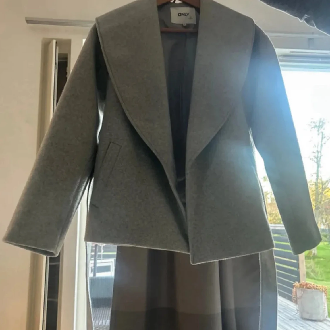 Snygg grå omlott kappa från ONLY med bred krage och bälte i midjan. Jackan har lång ärm och rak passform, perfekt för dig som gillar stilren och enkel design. Materialet är mjukt och känns lyxigt mot huden. Passar dig som vill ha en chill men ändå classy look.