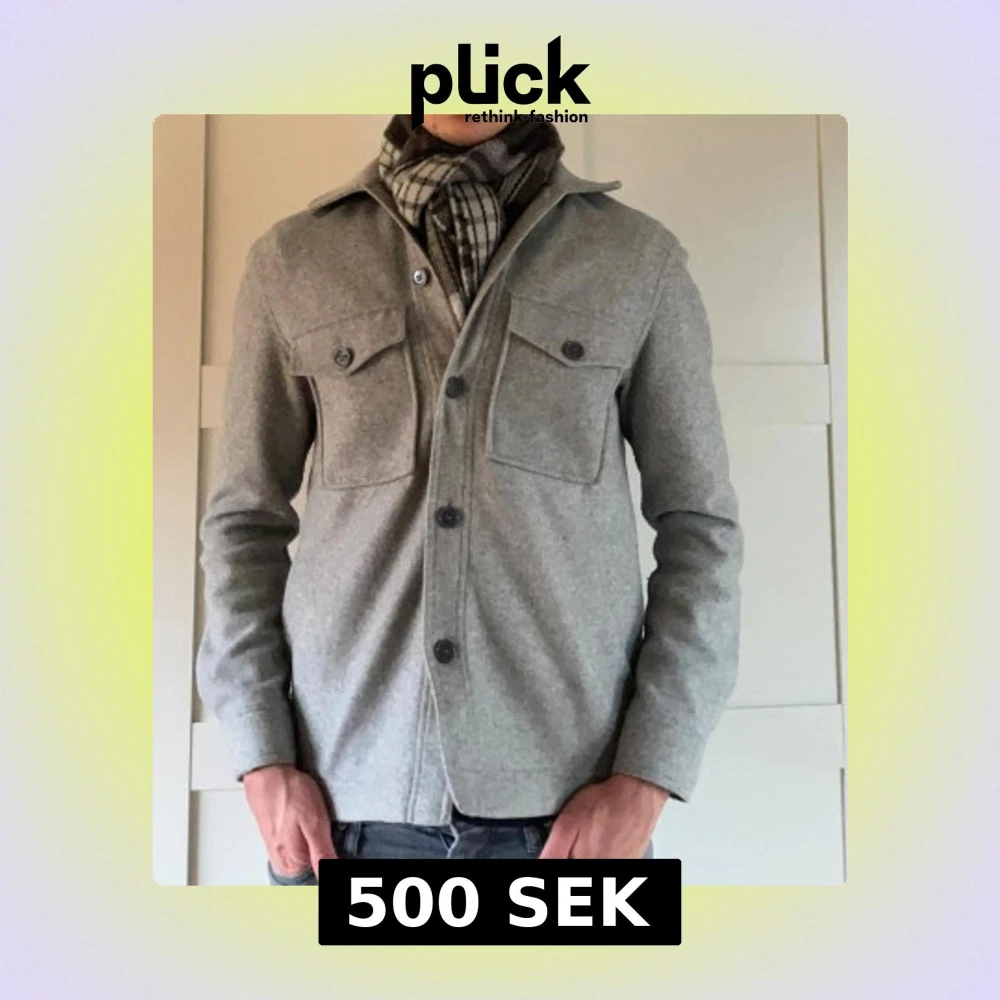 Snygg grå overshirt från Studio Total i storlek S men passar M. Jackan har två stora bröstfickor med knappar, klassisk krage och knäppning framtill. Nypris 950kr.
