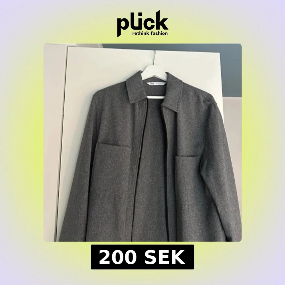 Snygg grå overshirt från Zara i storlek L. Jackan har en rak passform, klassisk krage och stora fickor framtill. Perfekt lager-på-lager-plagg med stilren look.