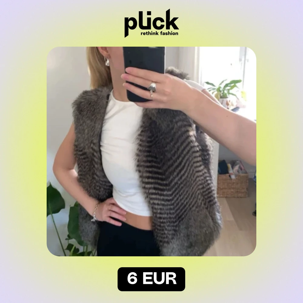 Säljer en superfin grå pälsväst från Lindex i storlek S. Västen har ett snyggt randigt mönster och är perfekt för att hålla sig varm och stilren under höst och vinter. Den är mjuk och bekväm att bära, och passar perfekt över en tröja eller topp.