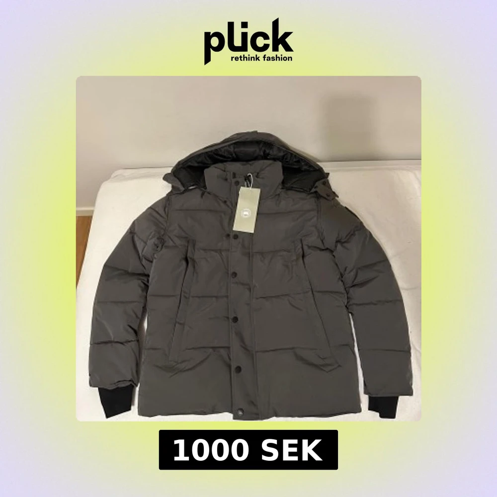 Snygg grå pufferjacka från Canada Goose med huva och svart logotyp på ärmen. Jackan har svarta knappar, dragkedja och ribbade muddar vid ärmslut. Fodret är svart och jackan är tillverkad i polyester med dunfyllning. Perfekt för kalla vinterdagar.