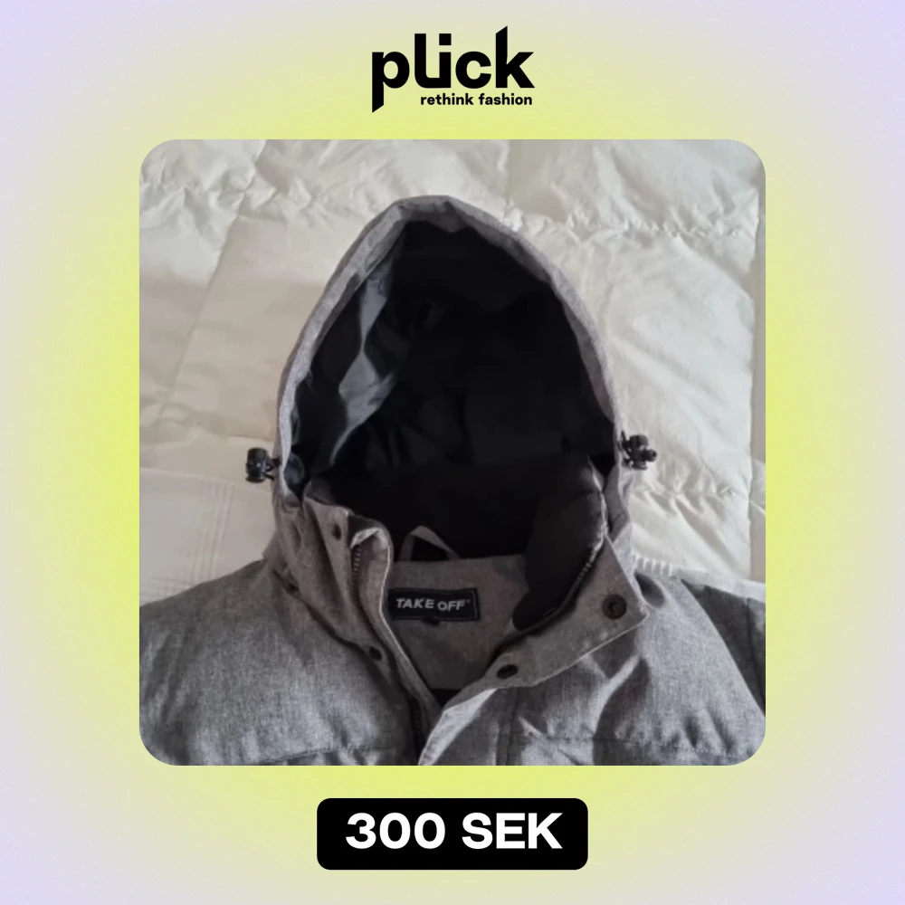 Säljer en grå pufferjacka från Take Off. Den är perfekt för kalla dagar med sin tjocka vaddering och huva. Jackan har långa ärmar och stängs med både dragkedja och knappar. Den har också praktiska fickor framtill. Perfekt för vintern!