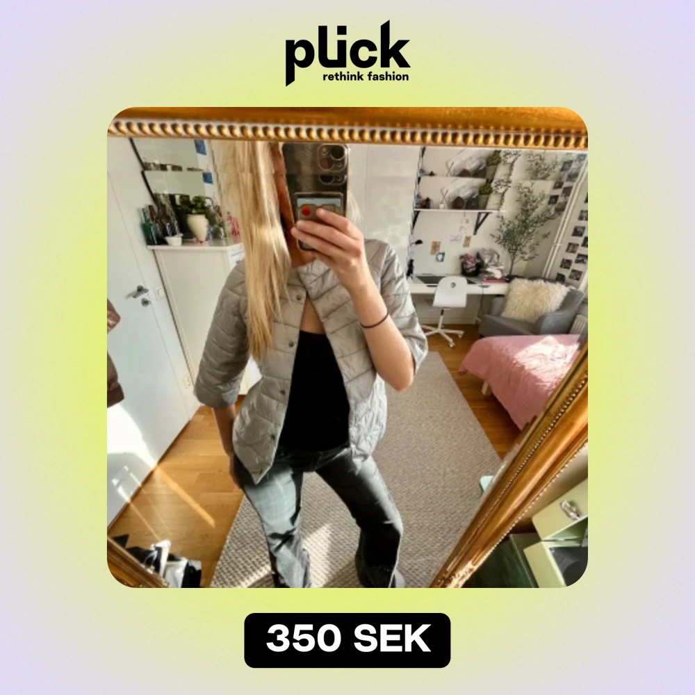 Säljer en snygg grå pufferjacka med trekvartsärm. Perfekt för höst och vår när det är lite kyligt ute. Jackan är köpt secondhand och om du har några fler frågor är det bara att kontakta mig 🌸