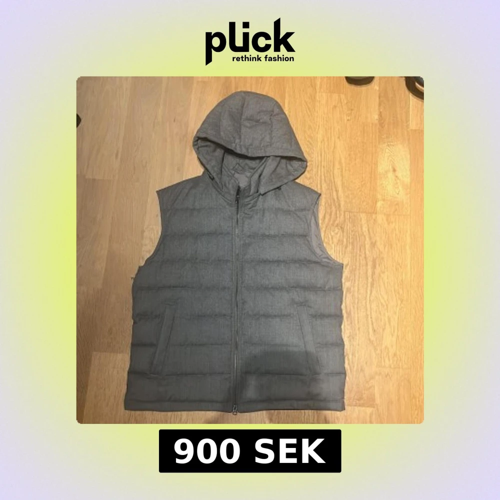 Snygg grå pufferväst från Bruun & Stengade i storlek XL. Västen har huva, två fickor framtill och stängs med dragkedja. Perfekt för lager-på-lager och chill höststil. Materialet är syntet och västen har en quiltad look.