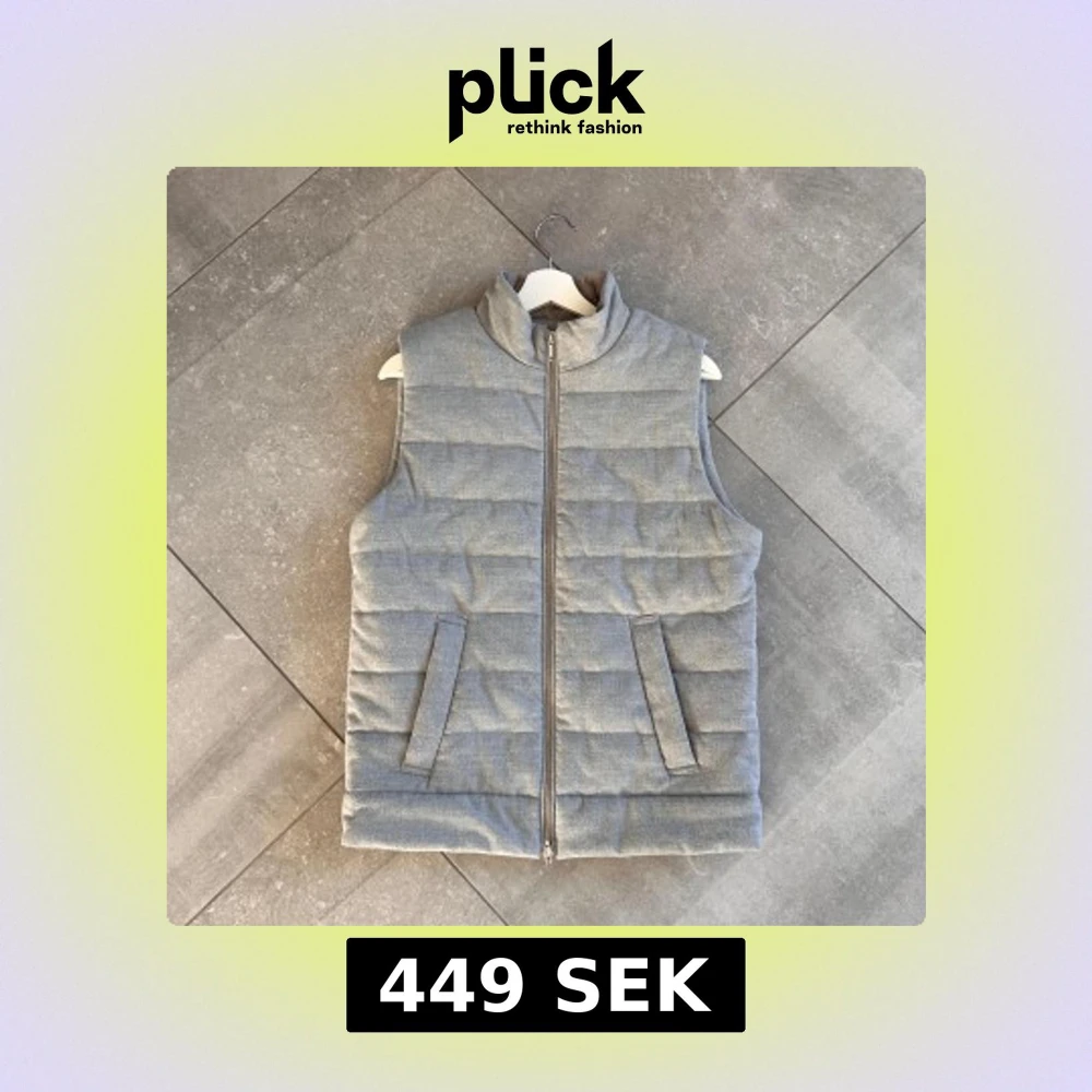 Snygg grå quiltad dunväst från Dressman med dragkedja och hög krage. Endast använd fåtal gånger så skick: (8,8/10) Stolek: (S)