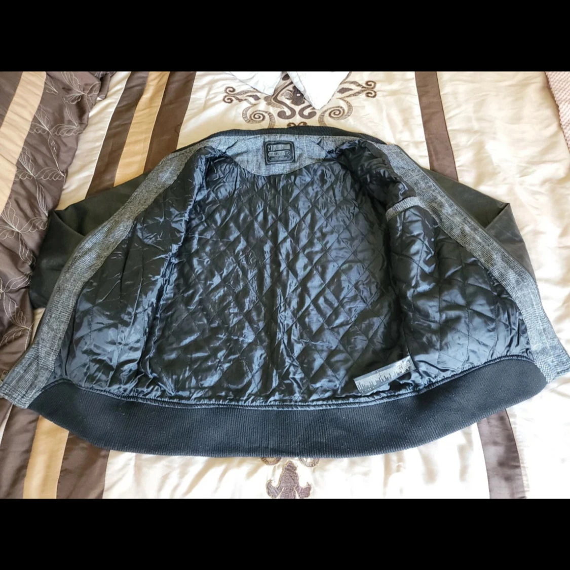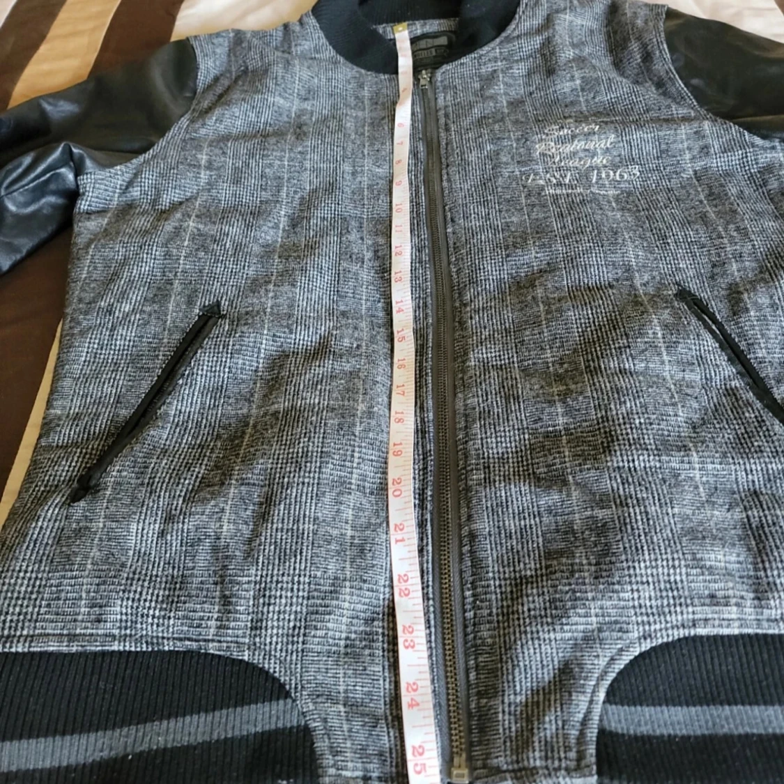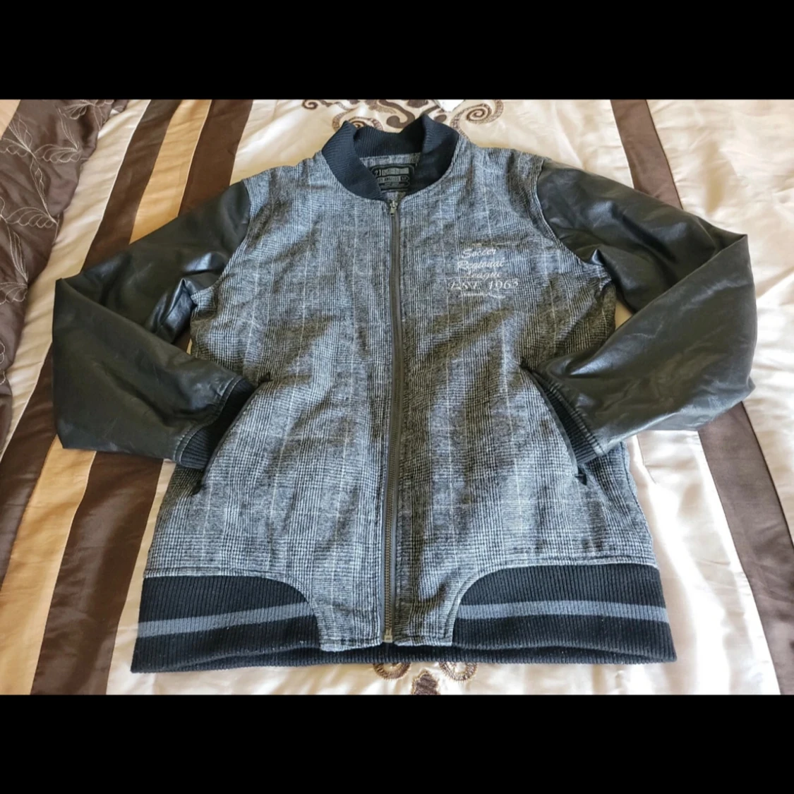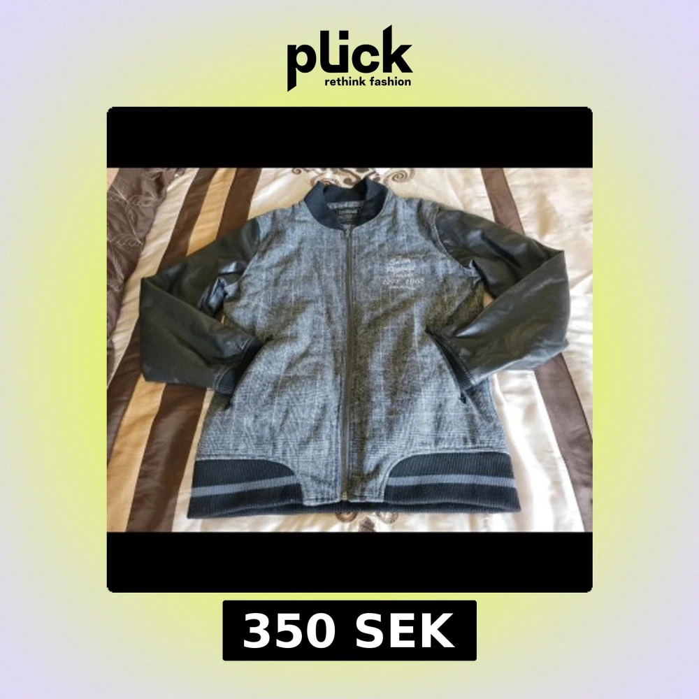 Snygg grå bomberjacka från Blend med rutigt mönster och svarta skinnärmar. Jackan har dragkedja framtill, ribbade muddar och quiltat foder. Perfekt för dig som vill ha en stilren och modern look.