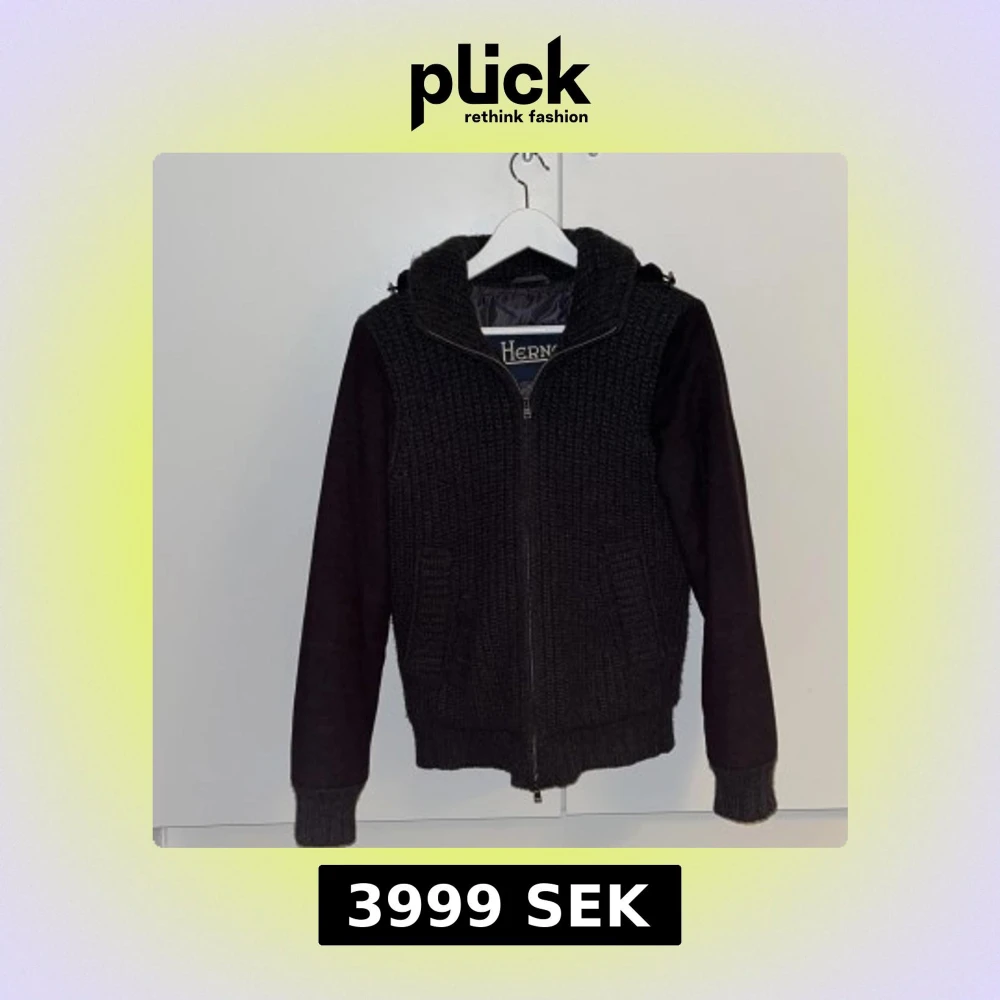 Snygg grå stickad jacka från Herno i Kashmir, med quiltad insida och huva. Skicket är 9/10 väldigt få tecken på användning, den är också i storlek S/46. För fler frågor är de bara o skriva//Liam