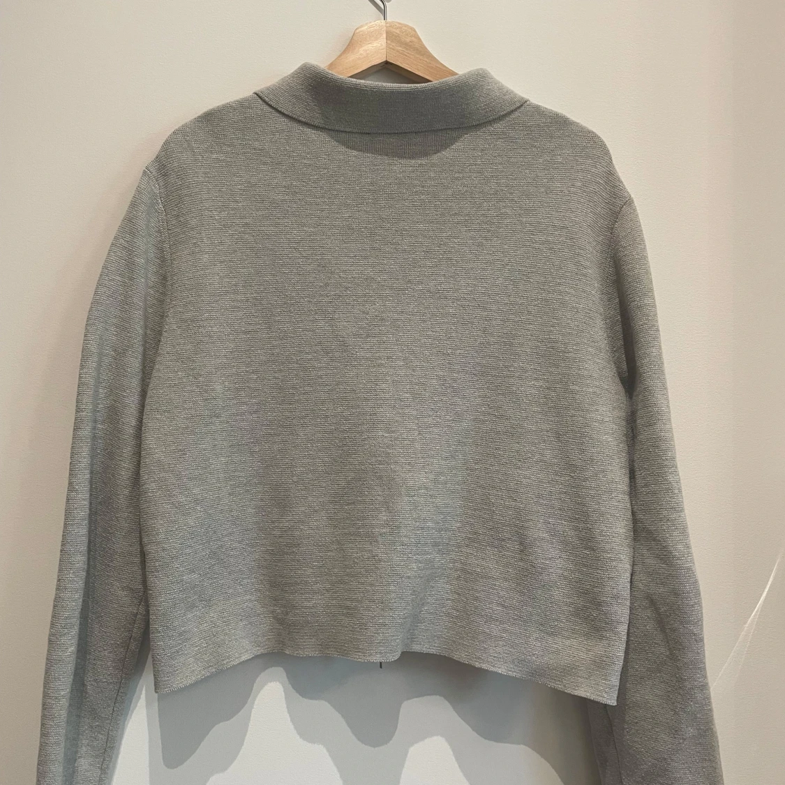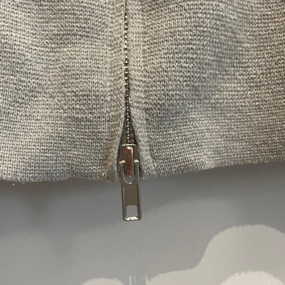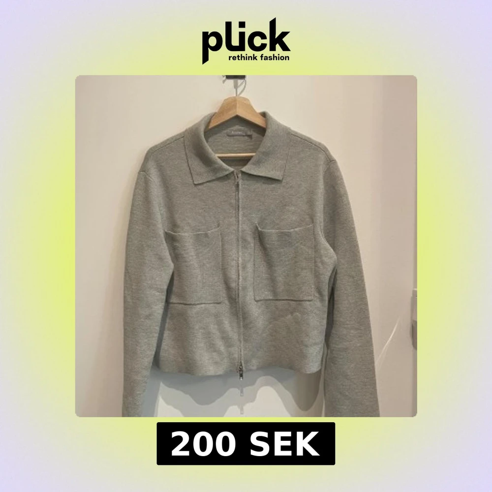 Säljer en stilren grå stickad jacka från Åhléns med dragkedja framtill och två stora fickor. Jackan har klassisk krage och lång ärm, perfekt för lager-på-lager. Enkel och snygg design som passar till mycket. Något sliten på dragkedjan (bild finns), annars i gott som nyskick. Nypris 500:-, säljer för 200:-