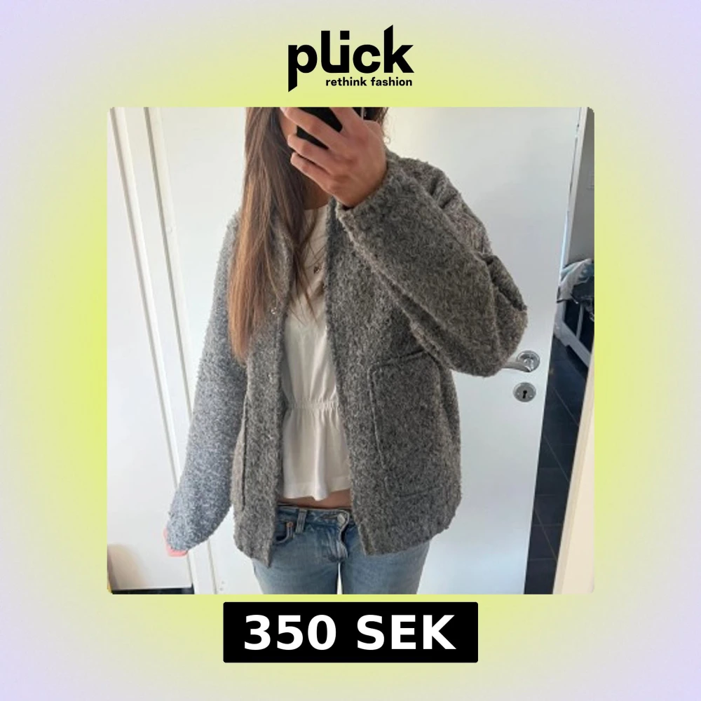 Säljer en mysig grå ulljacka med knappar framtill. Jackan har en normal passform och långa ärmar. Den är stilren och enkel att matcha med olika outfits. Original pris 650 säljer för 350!! Knappt använd💕
