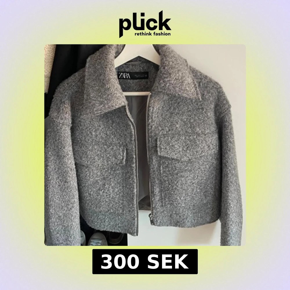 Snygg grå ulljacka från Zara med en croppad passform. Endast använd ett fåtal gånger så är i mycket fint skick.