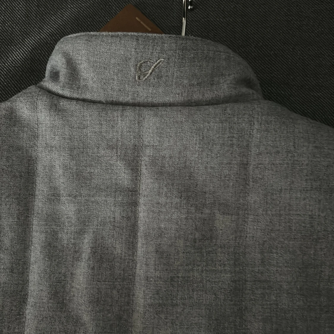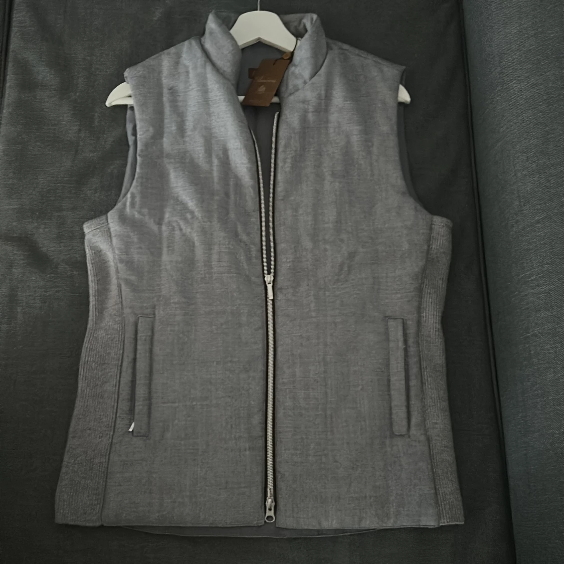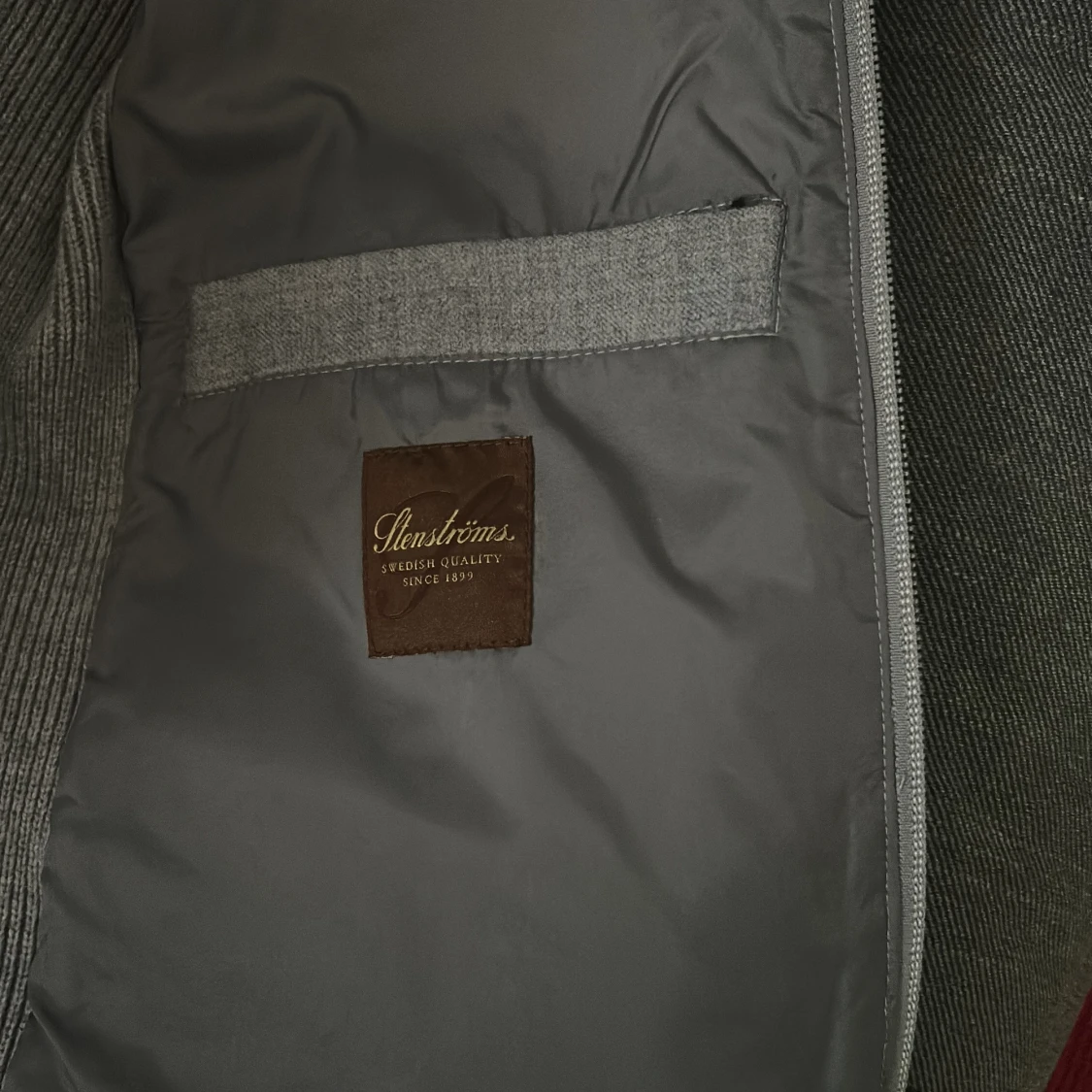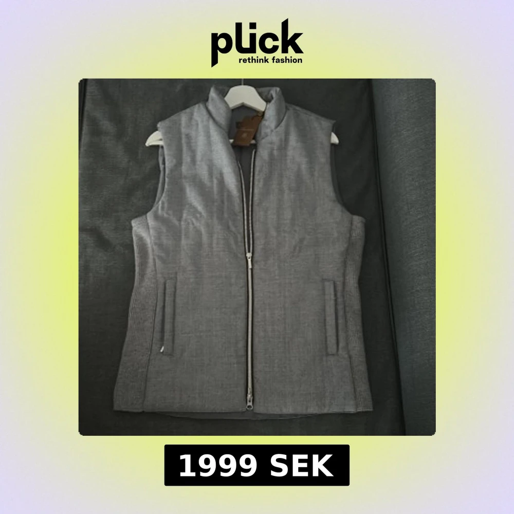 Snygg grå väst från Stenströms med rak passform och hög krage. Västen har två fickor fram och stängs med en silverfärgad dragkedja. Materialet är mjukt och har en diskret textur, perfekt för lager-på-lager.