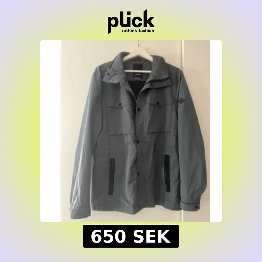 Snygg grön vindjacka från J. Lindeberg med klassisk krage, svarta detaljer vid fickorna och knappar framtill. Jackan har flera praktiska fickor och lång ärm, perfekt för blåsiga dagar och hösten. Enkel och stilren design som funkar till det mesta. Den är i storlek M och är i väldigt fint skick. Kan gå ner i pris vid snabb affär!