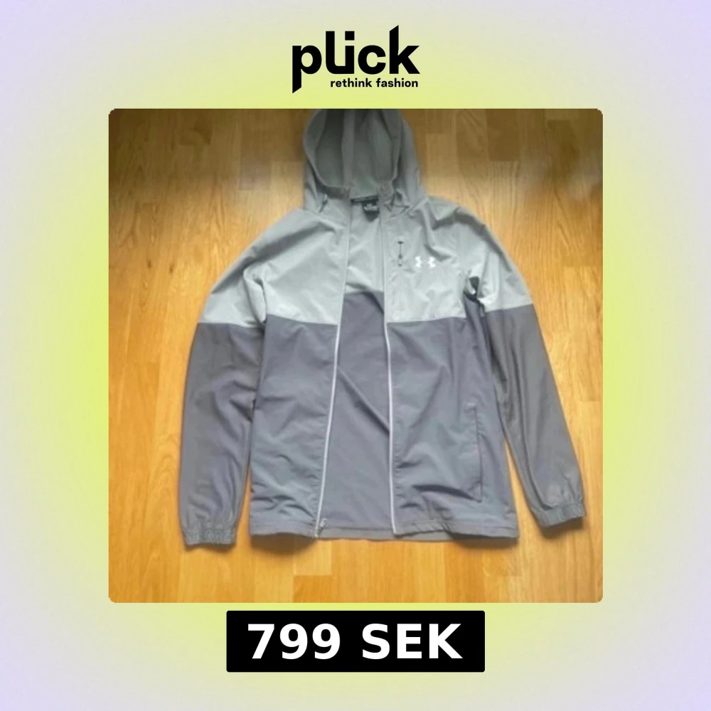 Snygg tvåfärgad grå vindjacka från Under Armour med huva och dragkedja hela vägen. Jackan har lång ärm, diskret logga på bröstet och praktiska fickor. Perfekt för blåsiga dagar och sportiga outfits. Två minimala hål som knappast märks av. Pris diskuteras vid snabb affär.