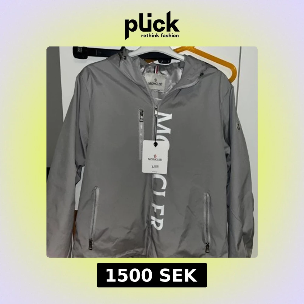 Snygg grå vindjacka från Moncler med stor vit logga längs dragkedjan, huva och tre praktiska fickor med dragkedja. Jackan har ett silkeslent foder och Moncler-märke på ärmen. Perfekt för dig som vill ha en clean och stilren look.