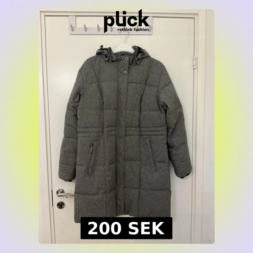 Säljer en grå vinterjacka från med luva och dragkedja framtill. Jackan har quiltad design, två fickor med dragkedja och justerbar luva med snörning. Perfekt för kalla dagar och riktigt skön att bära.