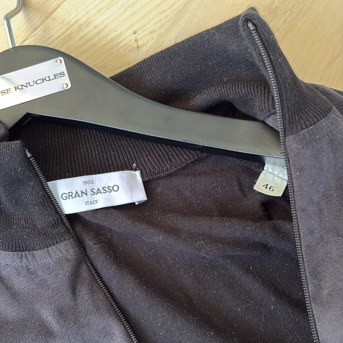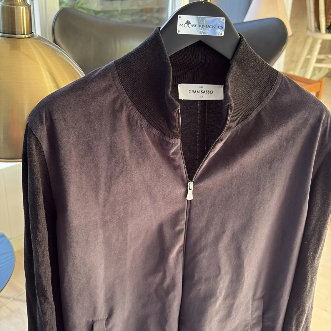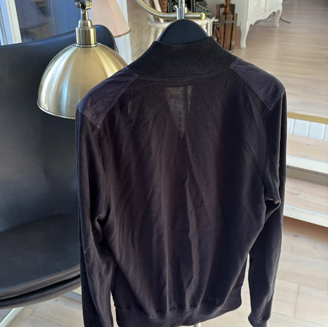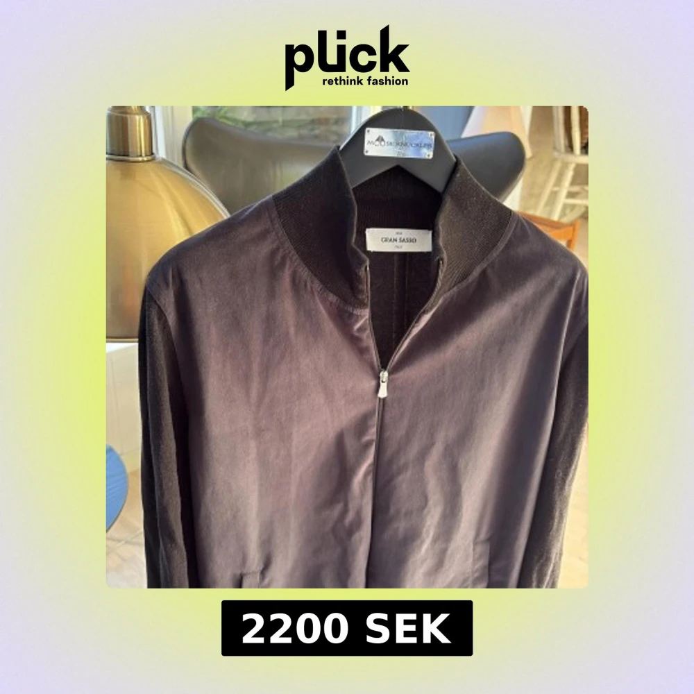 Knappt använd Stilren svart jacka från Gran Sasso med dragkedja och hög krage. Jackan är tillverkad och köpt i italien, riktigt högt kvalite! Jackan är i alcantara. Perfekt för dig som gillar lyx och något som är perfekt och riktigt snyggt i sommar som är lätt att slänga på! Passar s och xs!