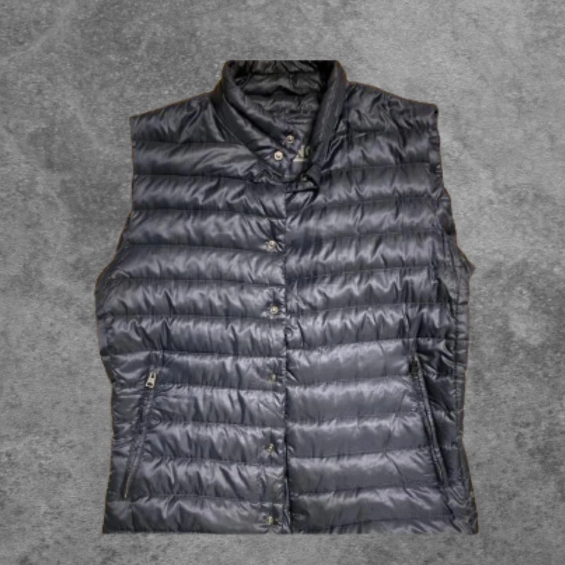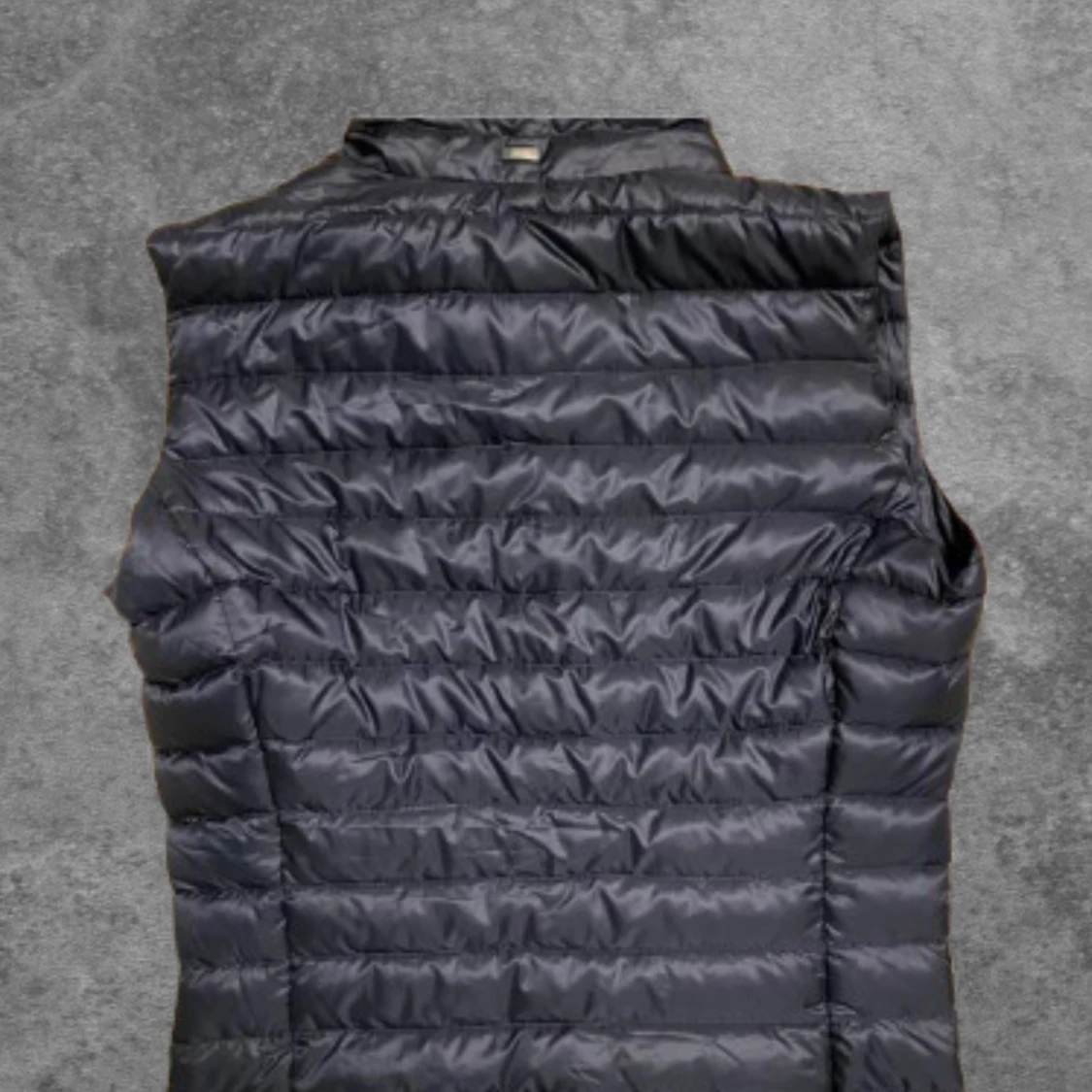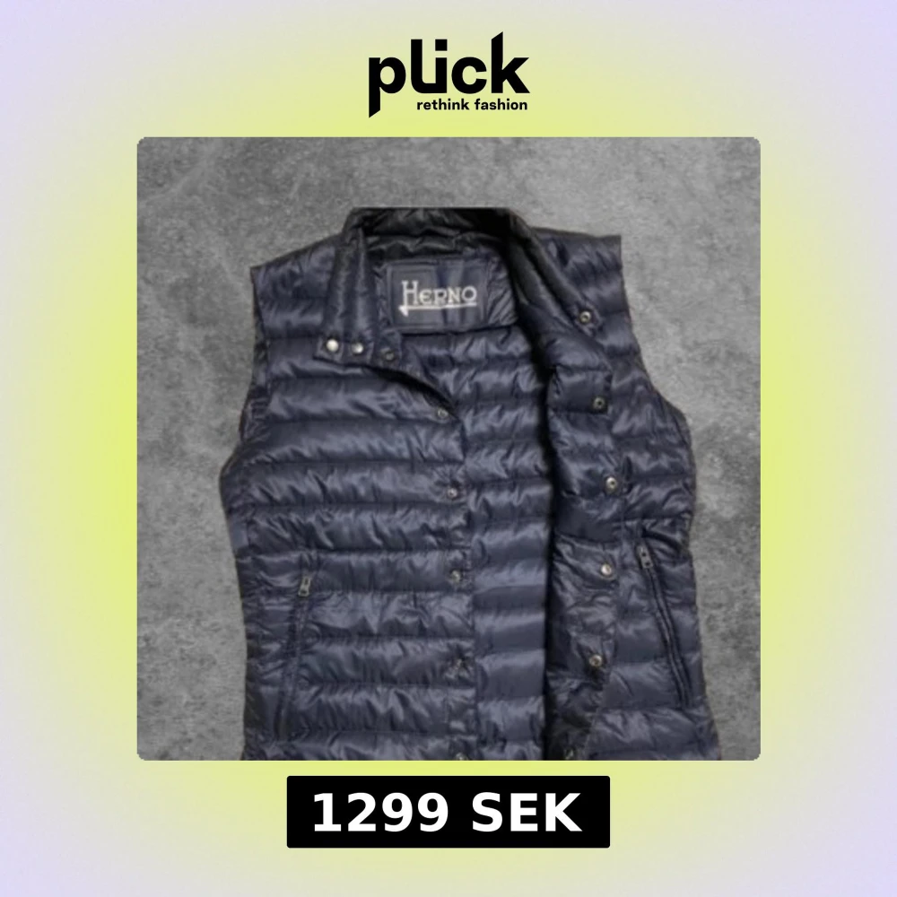 Snygg mörkblå dunväst från Herno med dragkedja och knappar. Perfekt för kyligare dagar med sin quiltade design och höga krage. Nypris: 4200kr mitt pris :1299kr. Storlek S med slim fit. Ny skick.