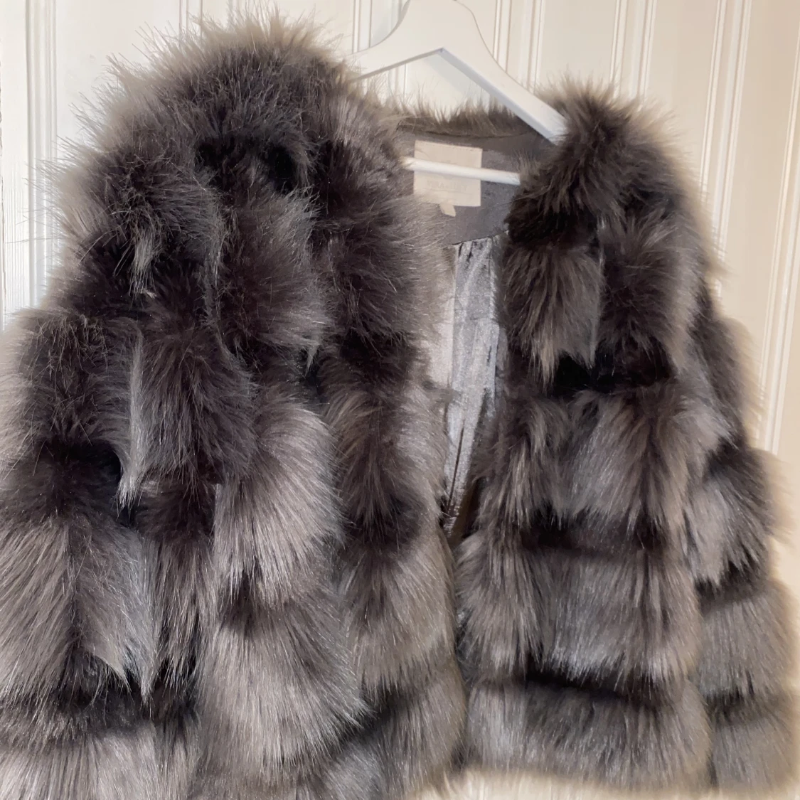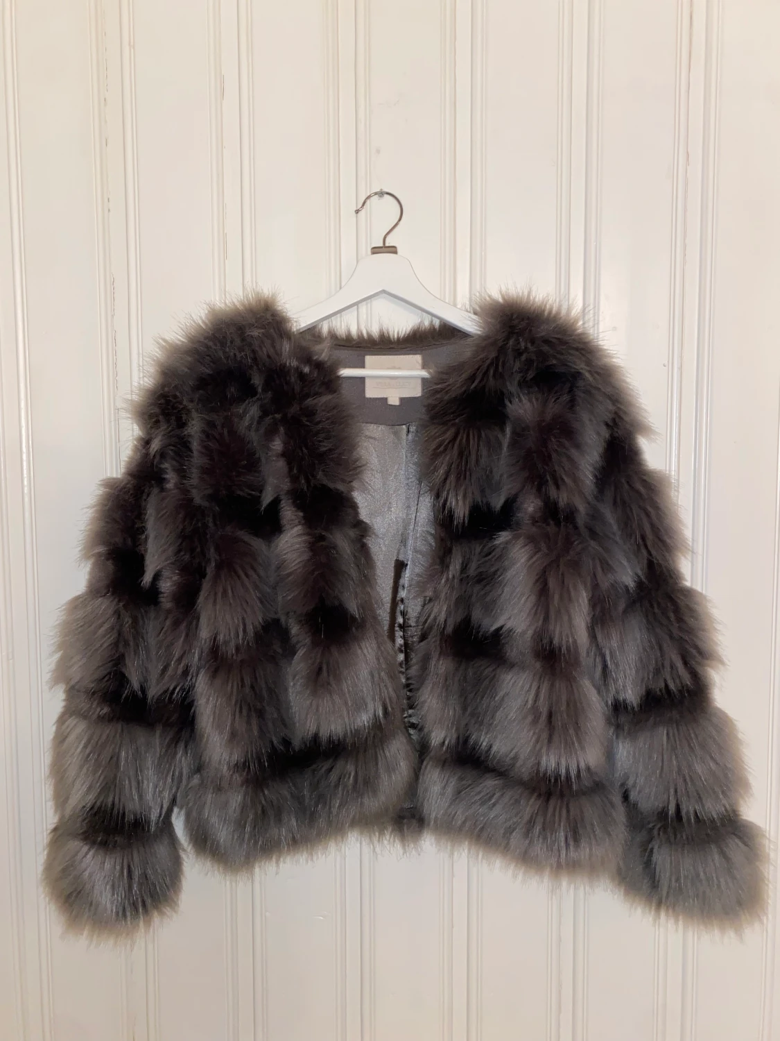 Grå ”randig” fur Coat från Vera & Lucy Strl: S