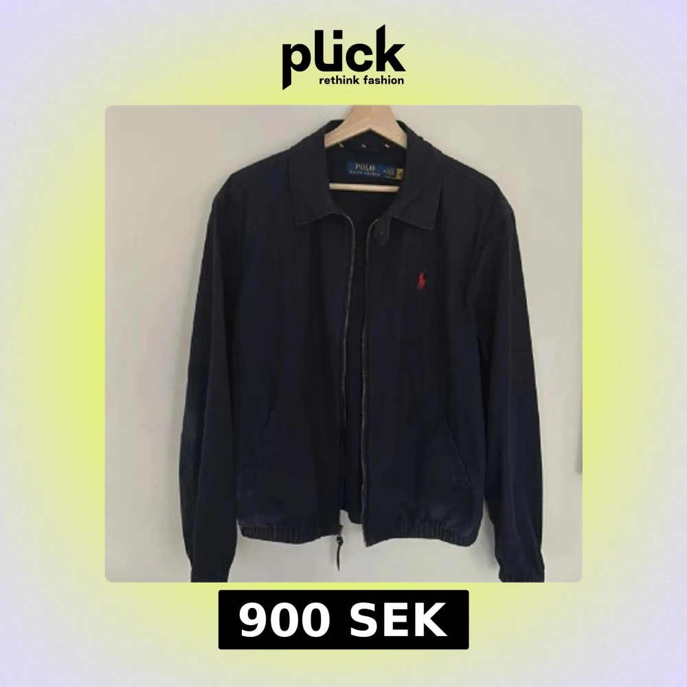 Säljer en stilren marinblå jacka från Polo Ralph Lauren med dragkedja och klassisk krage. Jackan har en röd broderad logotyp på bröstet och elastisk nederkant för en bekväm passform. Nypris: 1999kr