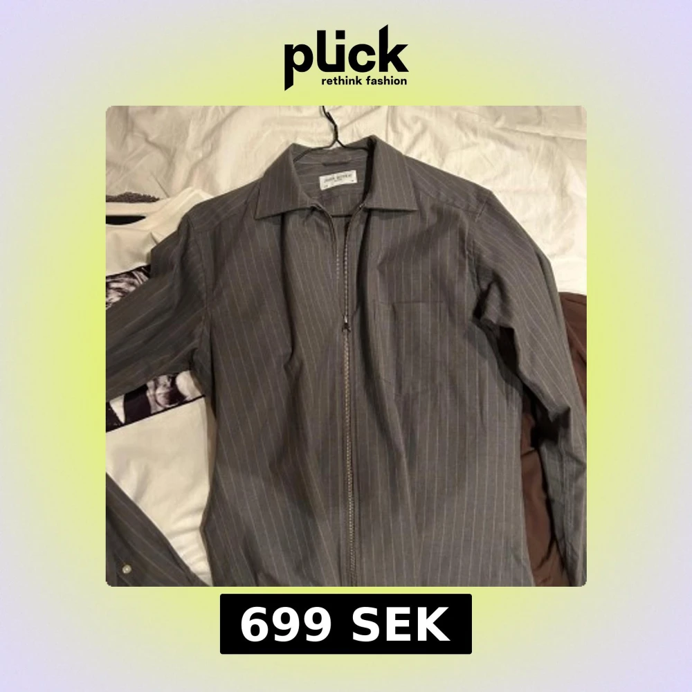 Snygg grå overshirt från John Herrick med tunna vita ränder och dragkedja framtill. Klassisk krage och en bröstficka ger en clean look. Perfekt att slänga över en t-shirt för en chill och stilren vibe. Har aldrig använts