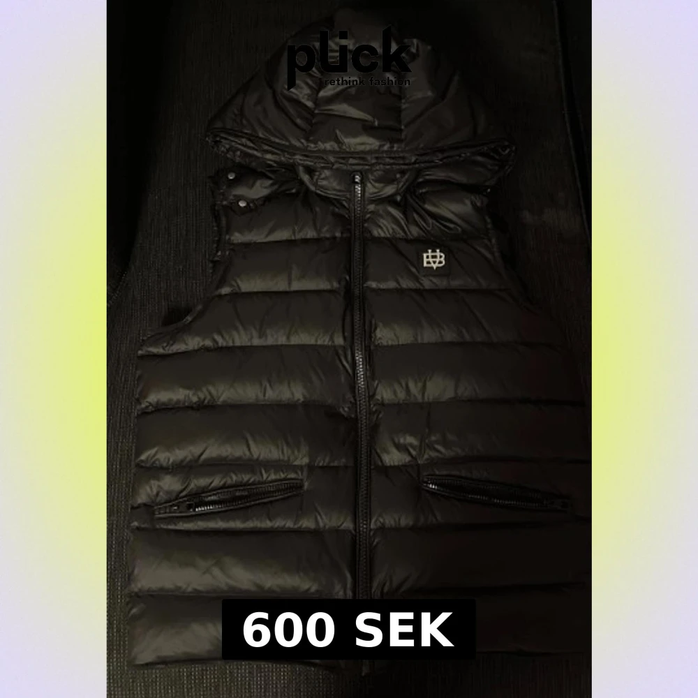 Svart dunväst från Bvaldi med avtagbar huva och snyggt logomärke på bröstet. Västen har två dragkedjeförsedda fickor framtill och quiltad design med breda horisontella kanaler. Perfekt för lager-på-lager och streetstyle.