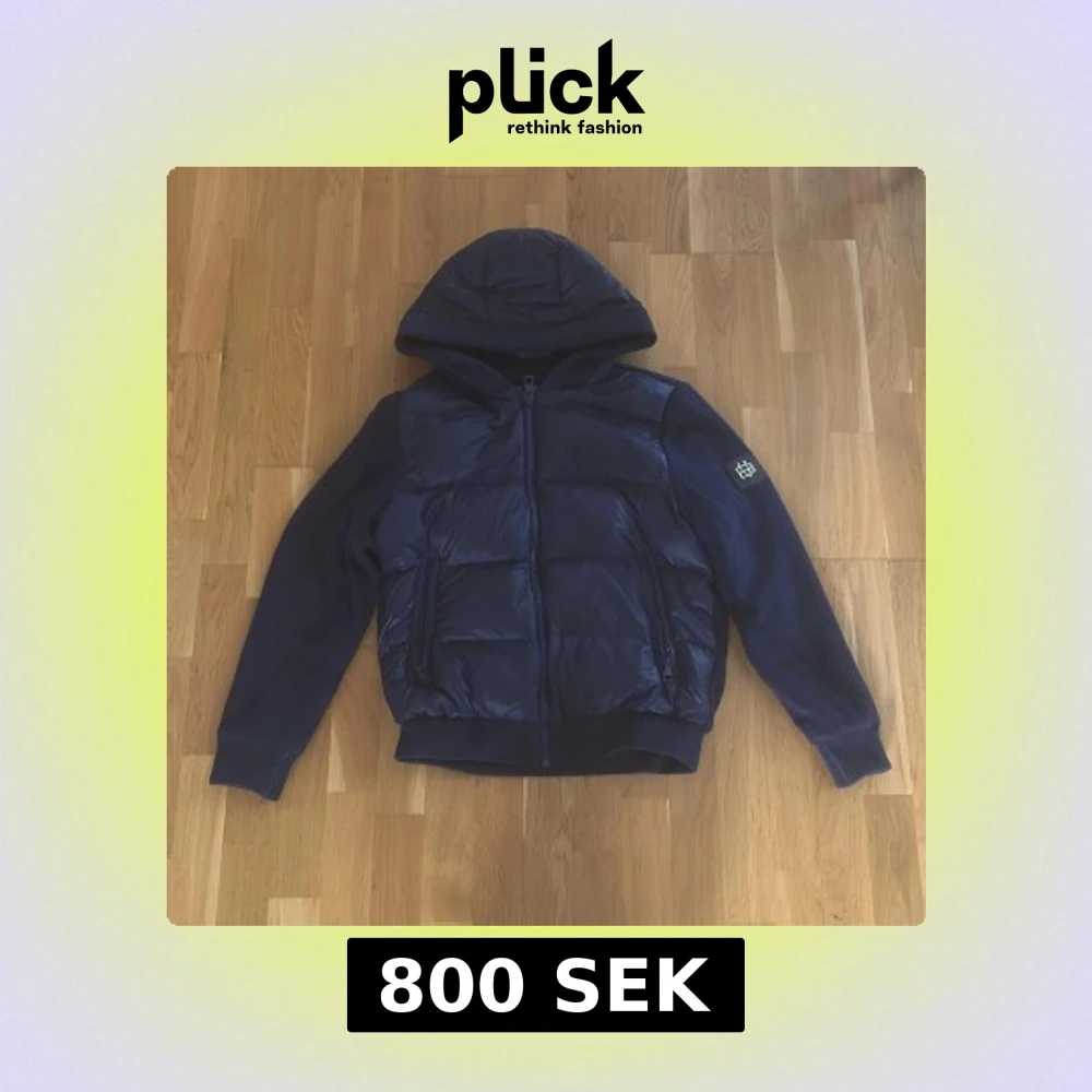 Säljer en mörkblå cardigan från Bvaldi med huva och dragkedja. Jackan har en pufferdesign på framsidan och är tillverkad i syntetmaterial. Perfekt för kyligare dagar med sin stilrena look och praktiska fickor.