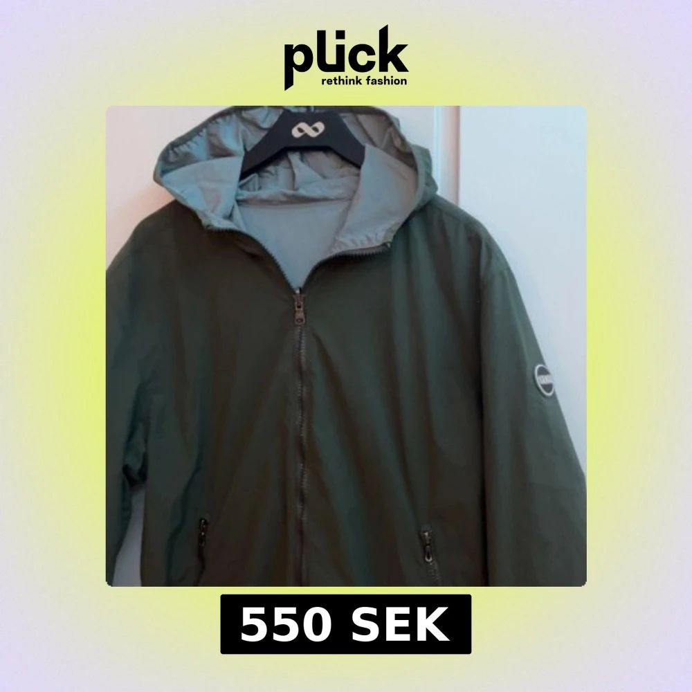 Säljer en stilren olivgrön vindjacka från Colmar med huva och dragkedja framtill. Jackan har två fickor med dragkedja och en diskret logotyp på ärmen. Perfekt för blåsiga dagar och enkel att matcha med olika outfits.