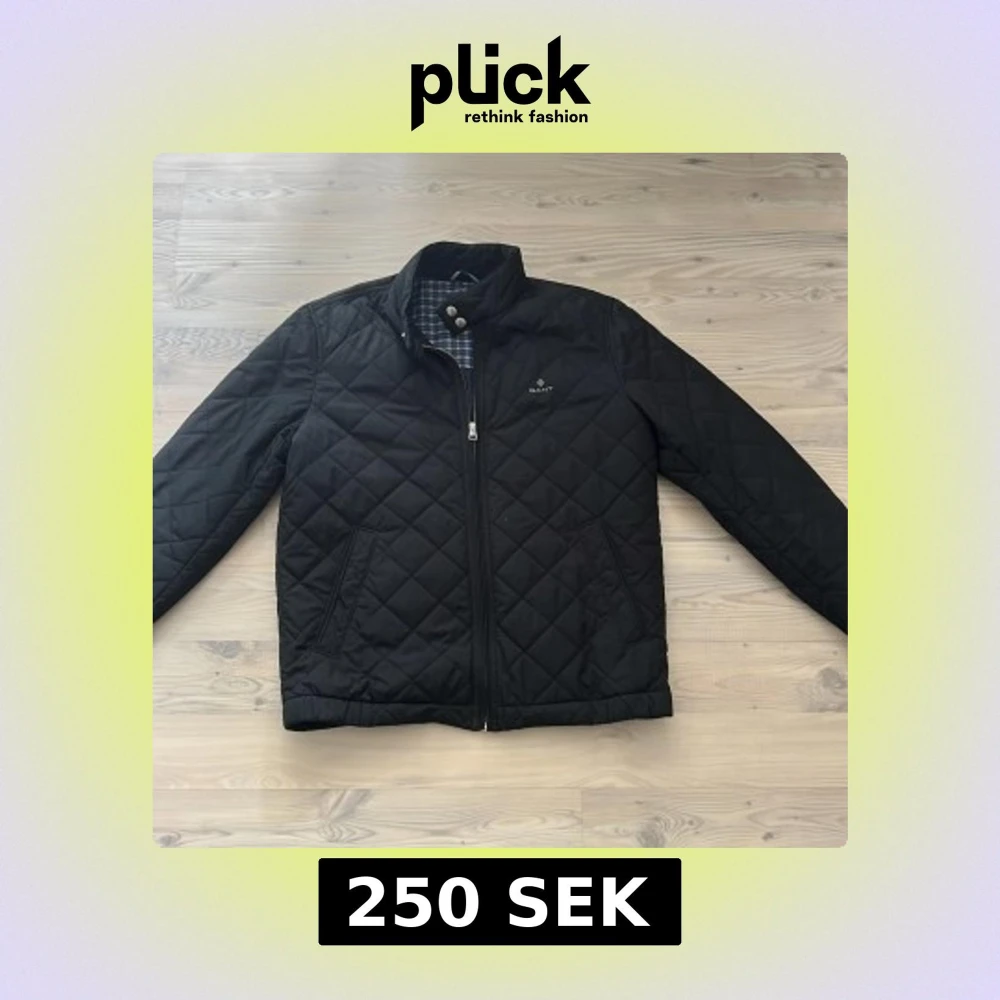 Stilren svart quiltad jacka från Gant med dragkedja framtill och ståkrage med knappdetalj. Nypris på dessa ligger på runt 2200kr