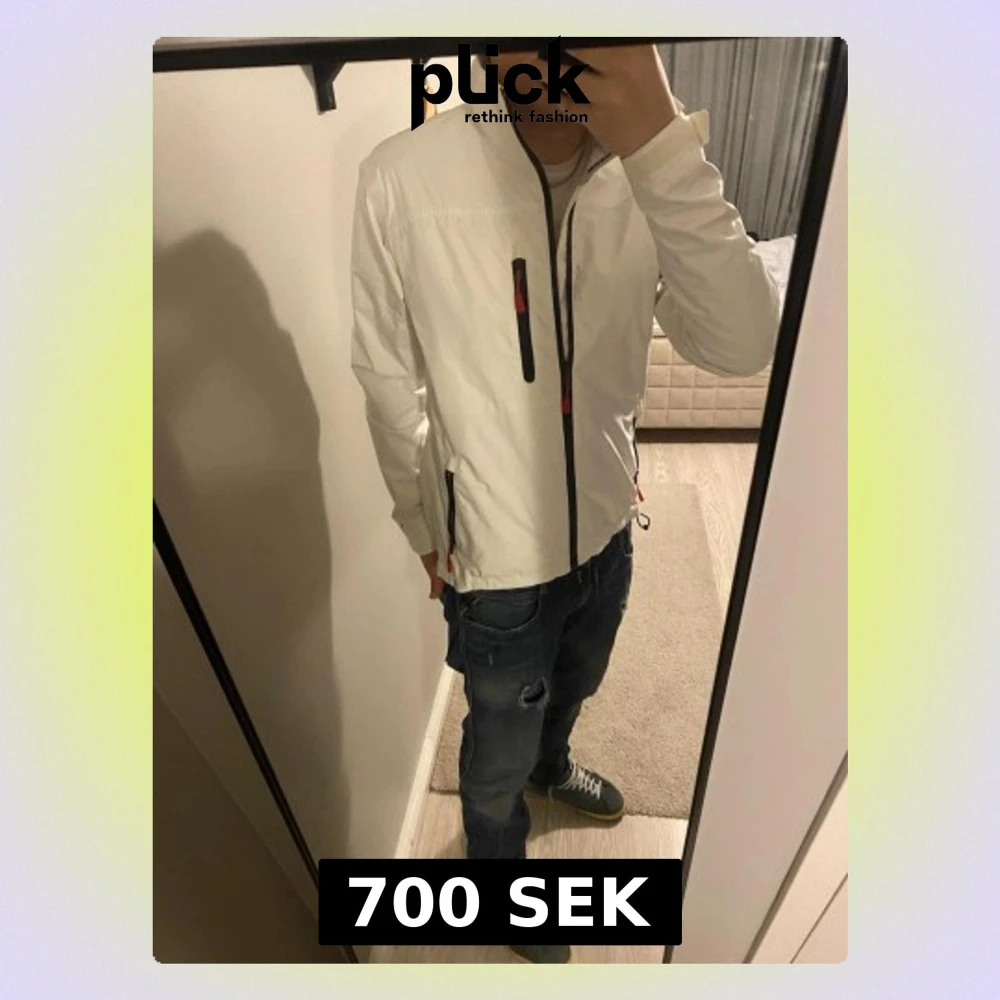 Snygg vit vindjacka från Helly Hansen med svarta detaljer och röda dragkedjor. Jackan har hög krage, tre fickor med dragkedja och meshfoder på insidan. HH-logga på ärm och rygg, samt justerbar nederkant. Perfekt för dig som gillar sportig stil.
