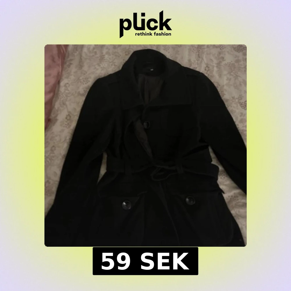 Snygg svart kappa från H&M med knappar och knytband i midjan. Perfekt för kyligare dagar och ger en stilren look. Passar bra till både vardag och mer uppklädda tillfällen.