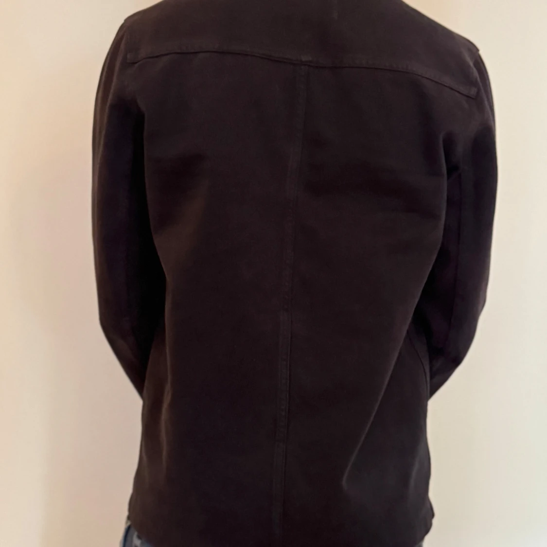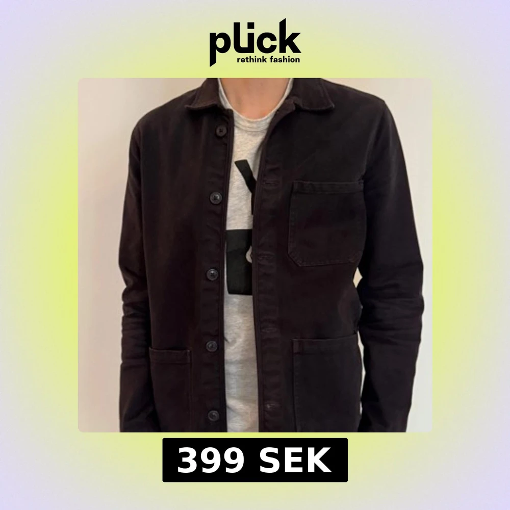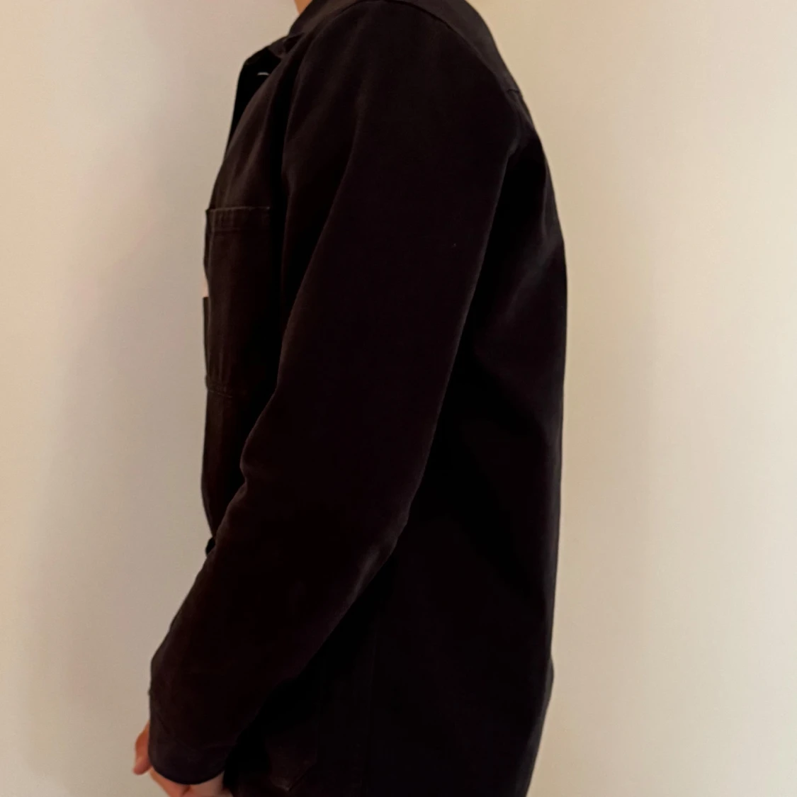Snygg svart overshirt med klassisk krage och tre praktiska fickor framtill. Jackan har knäppning med svarta knappar och är långärmad. Materialet är mjukt och känns som bomull, perfekt för lager-på-lager. Enkel och stilren design som funkar till många outfits.