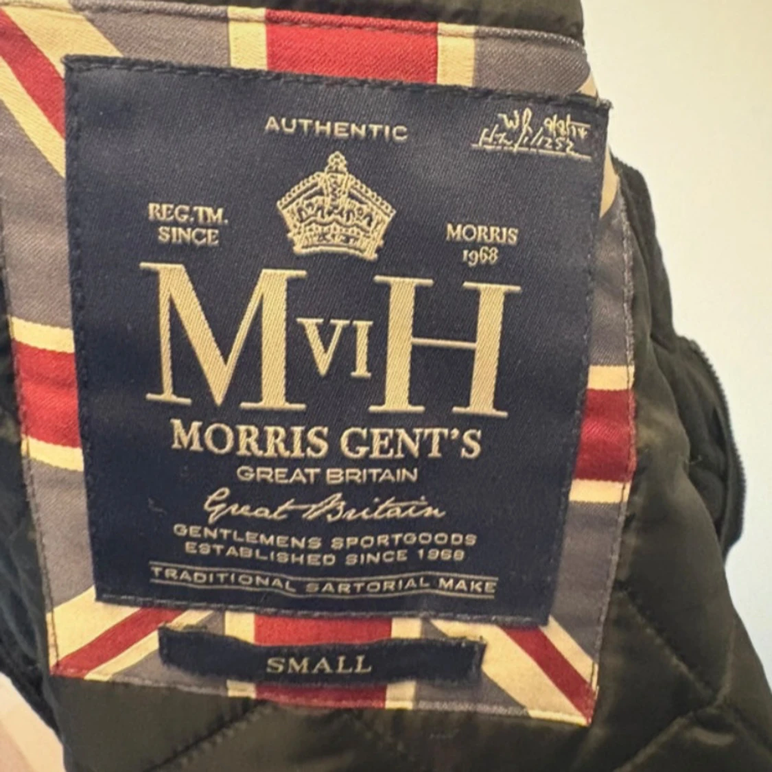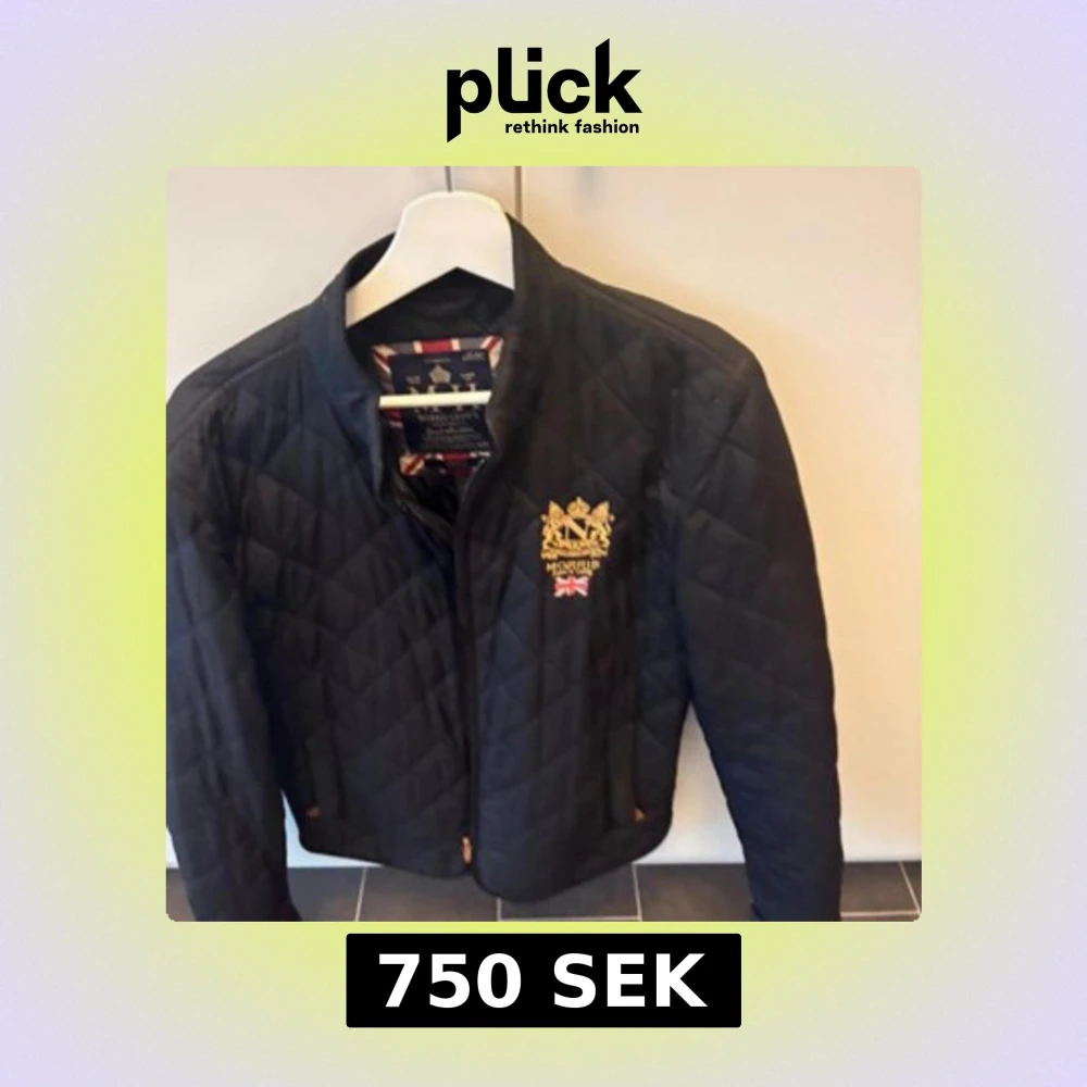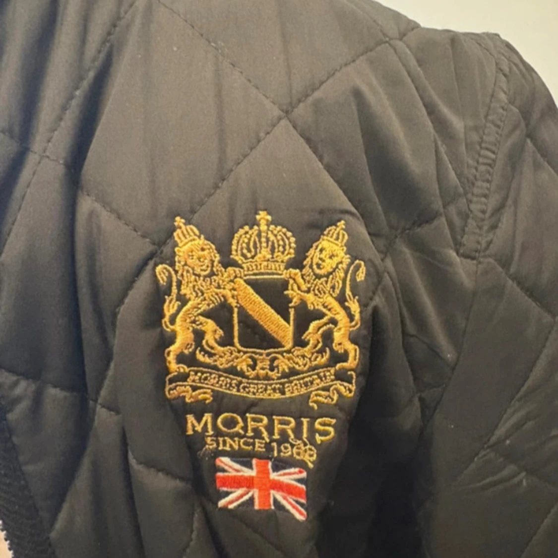 Svart quiltad jacka från Morris med guldbroderat emblem och brittisk flagga på bröstet. Riktigt fet och populär, skriv om ni har frågor. Nypris runt 2000kr