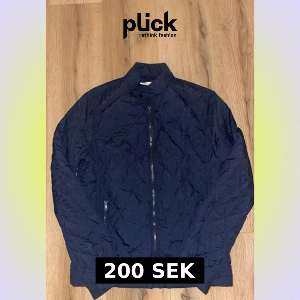Snygg mörkblå pufferjacka med quiltad design och dragkedja framtill. Jackan har ståkrage, två sidofickor med dragkedja och knappdetaljer vid ärmslut. Perfekt för dig som gillar stilren och sportig look.