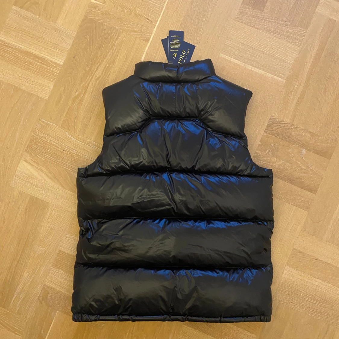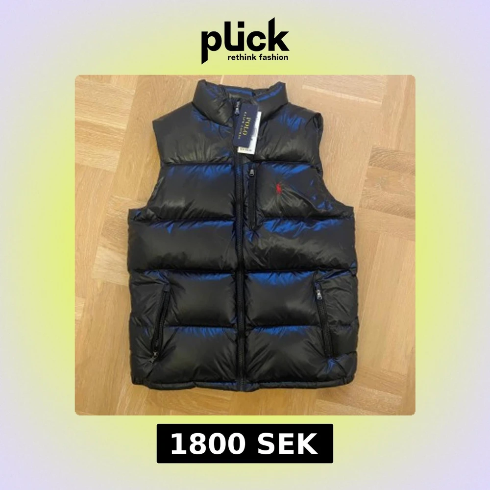 Snygg svart dunväst från Polo Ralph Lauren med hög krage och två praktiska fickor med dragkedja. Västen har ett quiltat mönster och den klassiska röda Polo-loggan på bröstet. Perfekt att slänga över en hoodie nu innan hösten! Västen är i XL - 18-20 år!!!